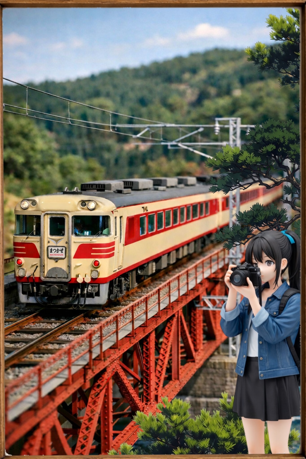 今回は初の撮り鉄女子を生成しました~こういうニッチな趣味を持つ女の子って好きです~あととにかくキハ80系のキノコ型クーラーと181系のラジエターが生成されない、、、天井の機器ってデーターが少ないんだろうな~撮り鉄女子に「ここ違う!」って怒られそう