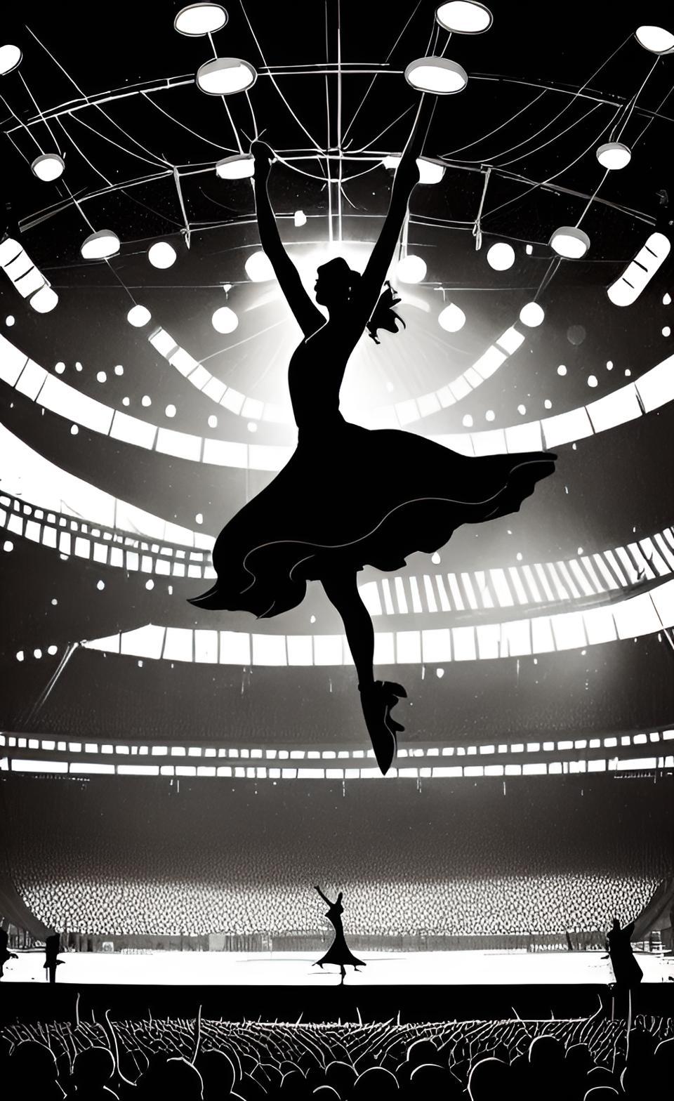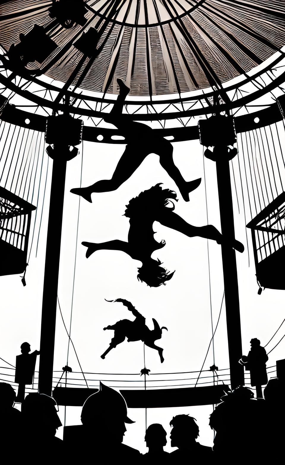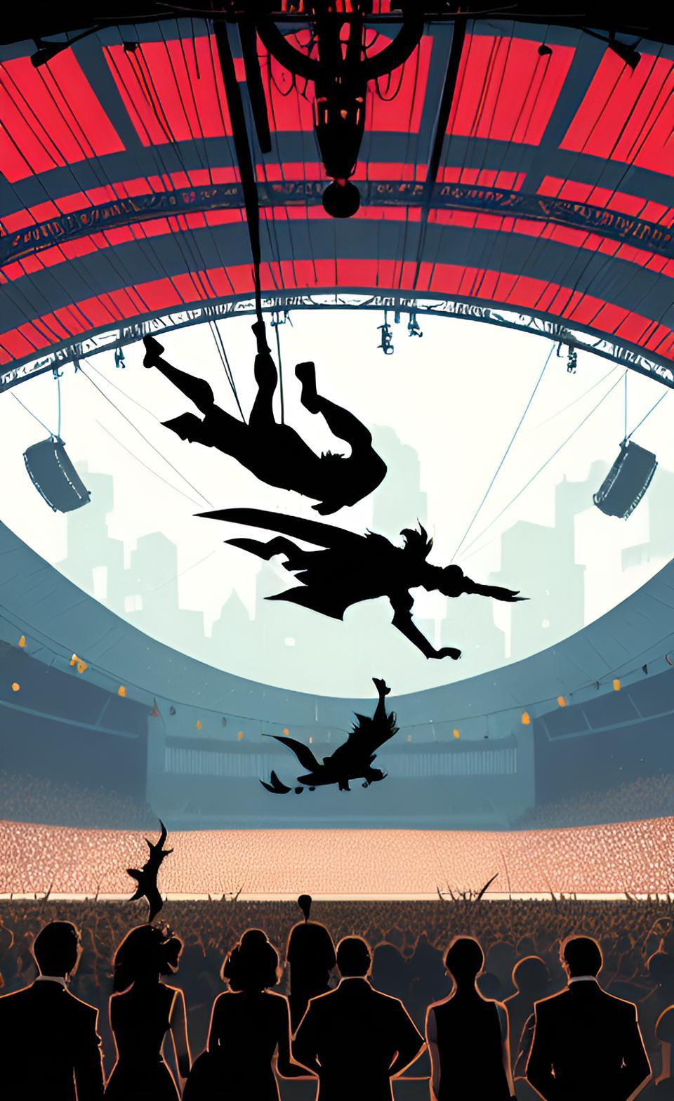 ブランコに乗って空中を飛び交うきらびやかな男女