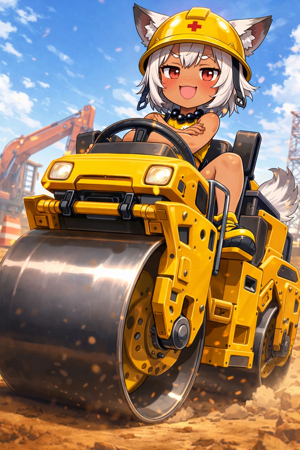 ロードローラーが出なかったので、3枚目の狼耳民族さん(ヘルメットver.)を生成SDXLで生成して