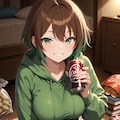 本を読みながら飲み食いしそうな感じで生成してみました😄