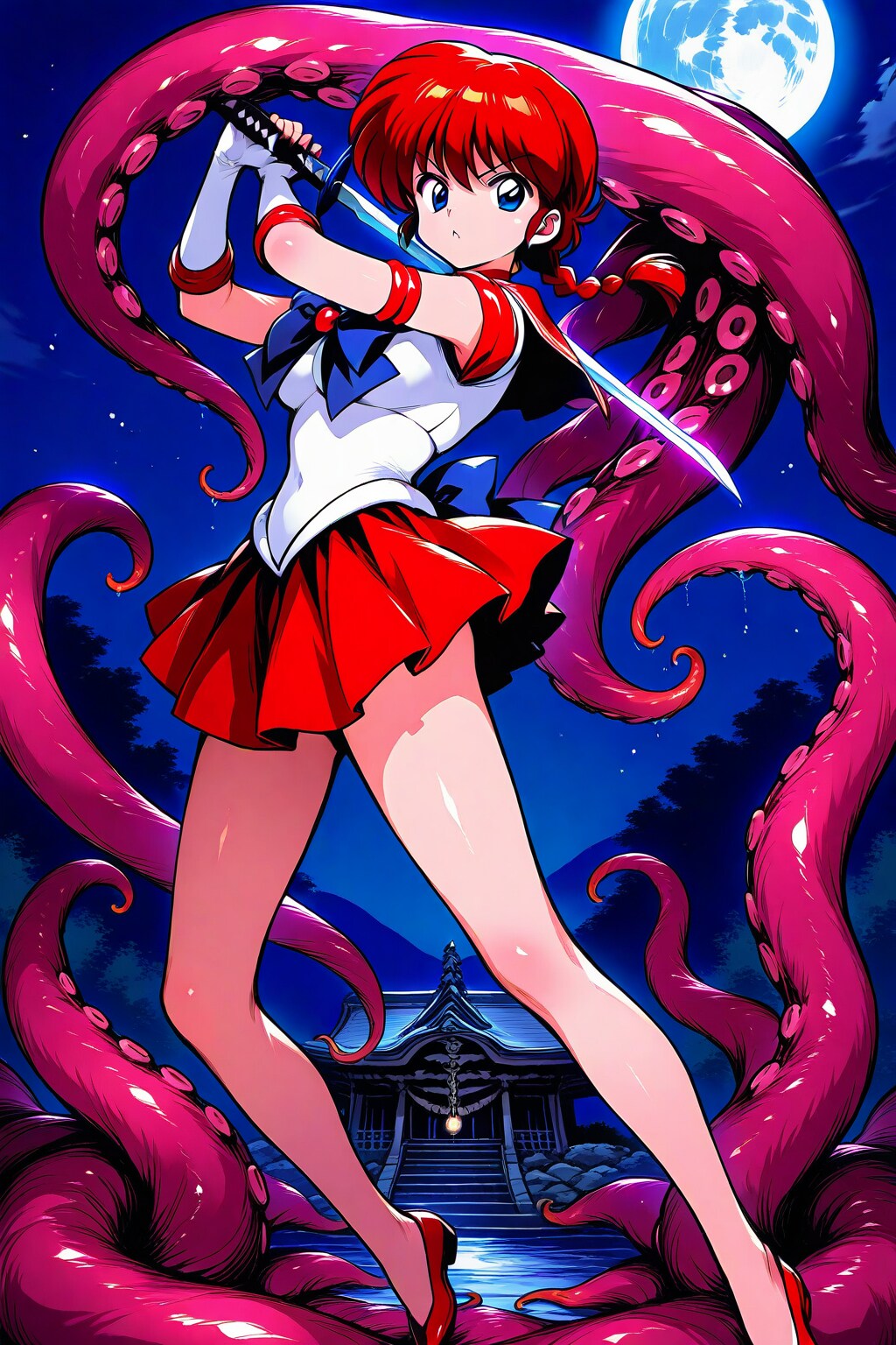 触手に倒され、気が滅入っている、らんま。そんな中、火野神社に触手襲来!