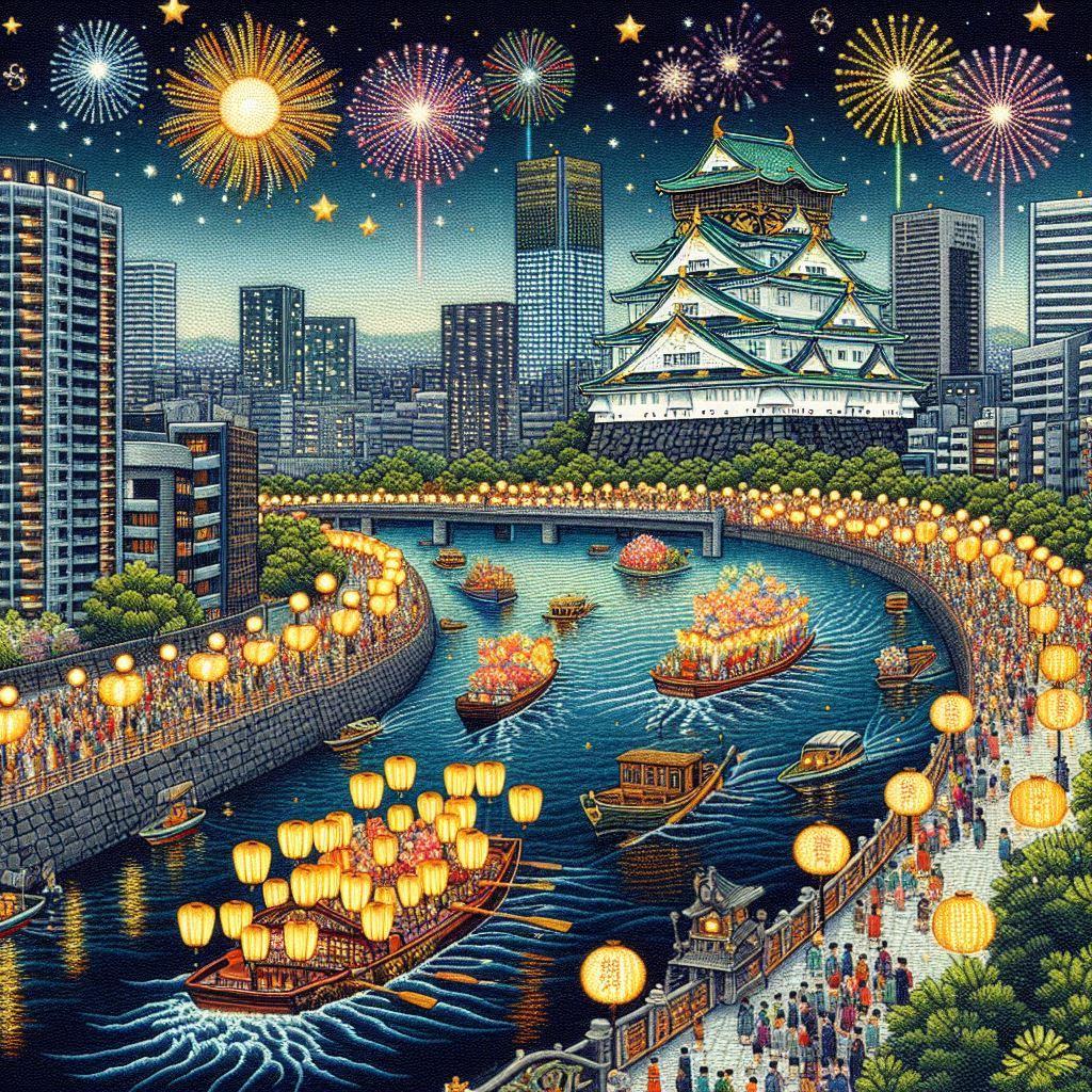 花火も上がります。中心となる大阪天満宮や日本一長い商店街・天神橋筋商店街は大賑わいです。