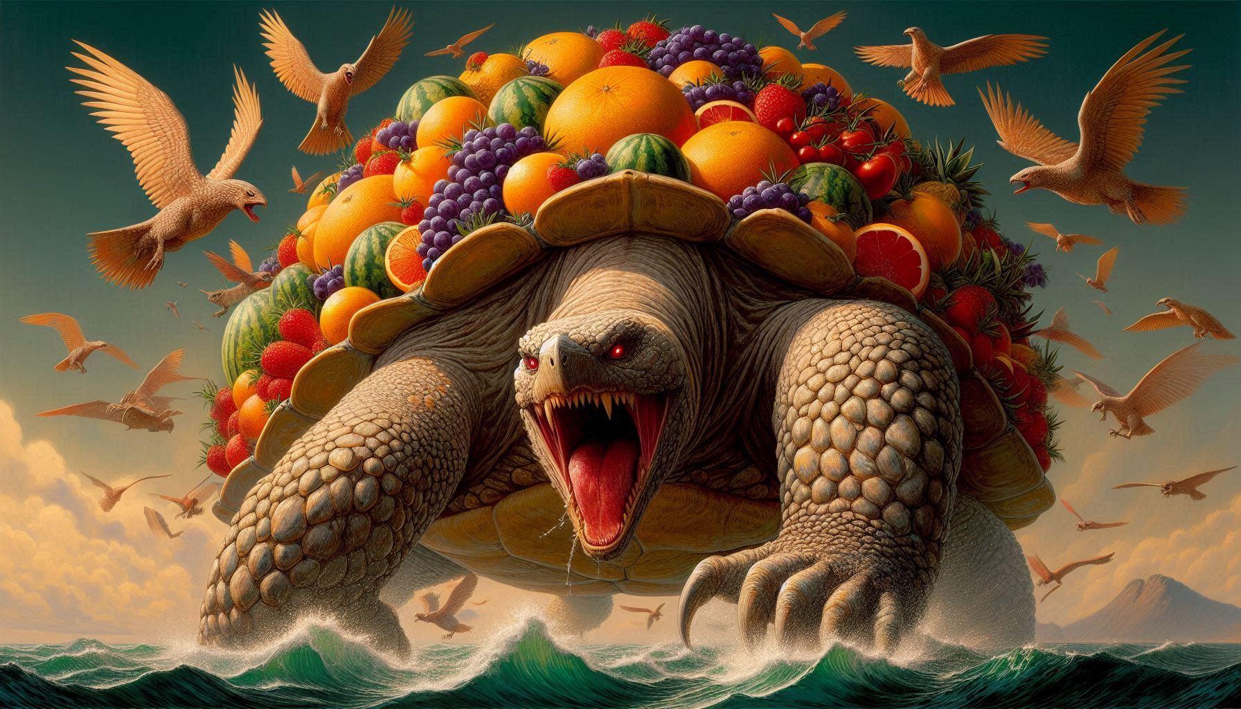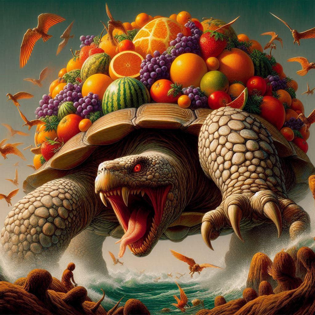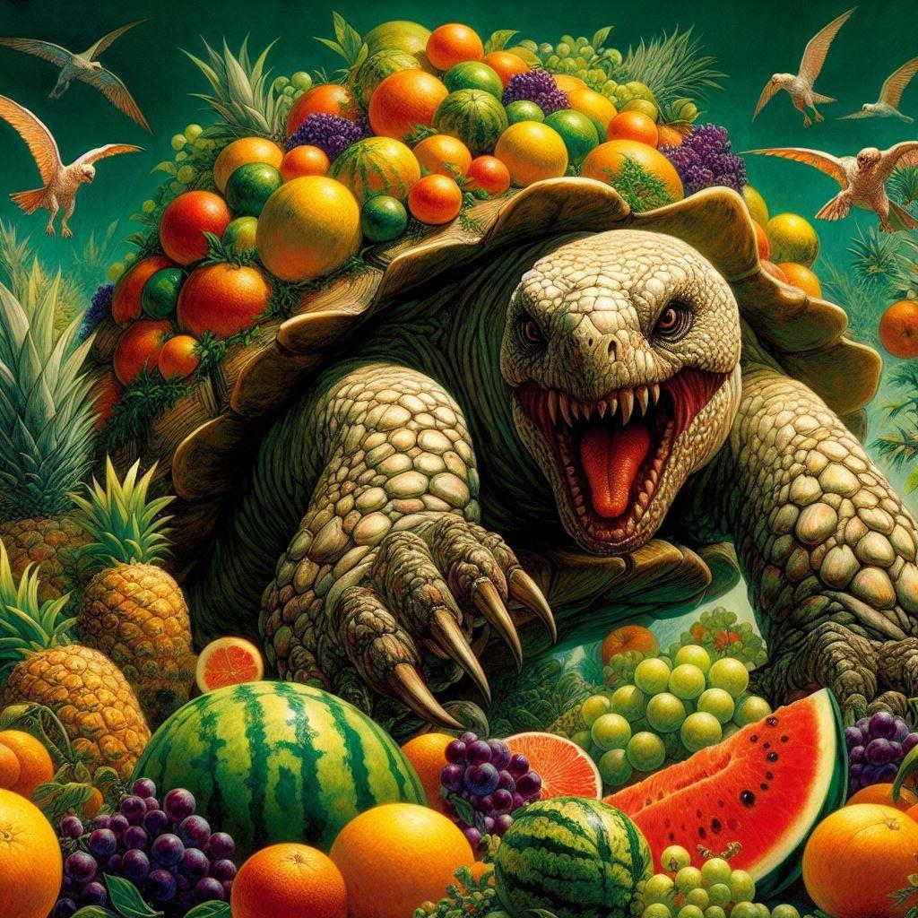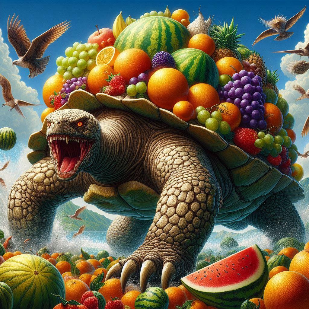 南海の孤島「クーダモノ島」に生息する巨大ガメ「フルーツ盛玄武」!・・・。