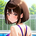 うちの子アキちゃんの見返りイラストです!彼女は短め、ボブカットなのでそのまま💦
