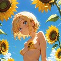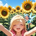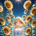 この女の子、ひまわりに囲まれて……まるで妖精さんみたいですっ……!