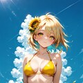 ビキニのひまわりイエローと、背景の空の青……コントラスト最高〜♥