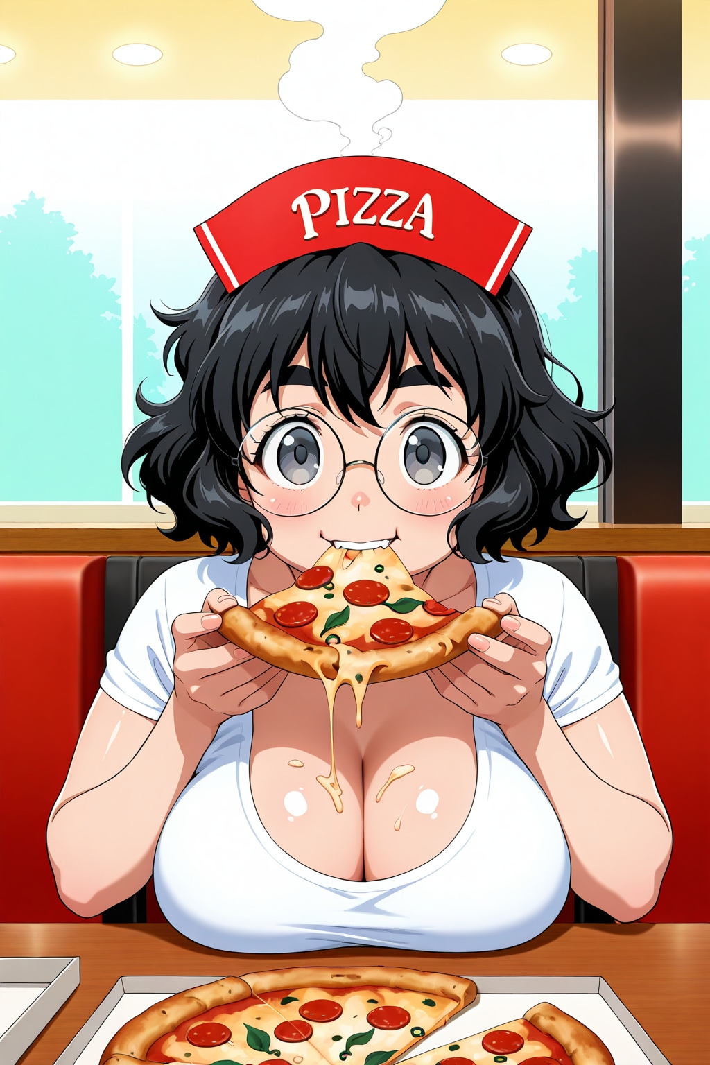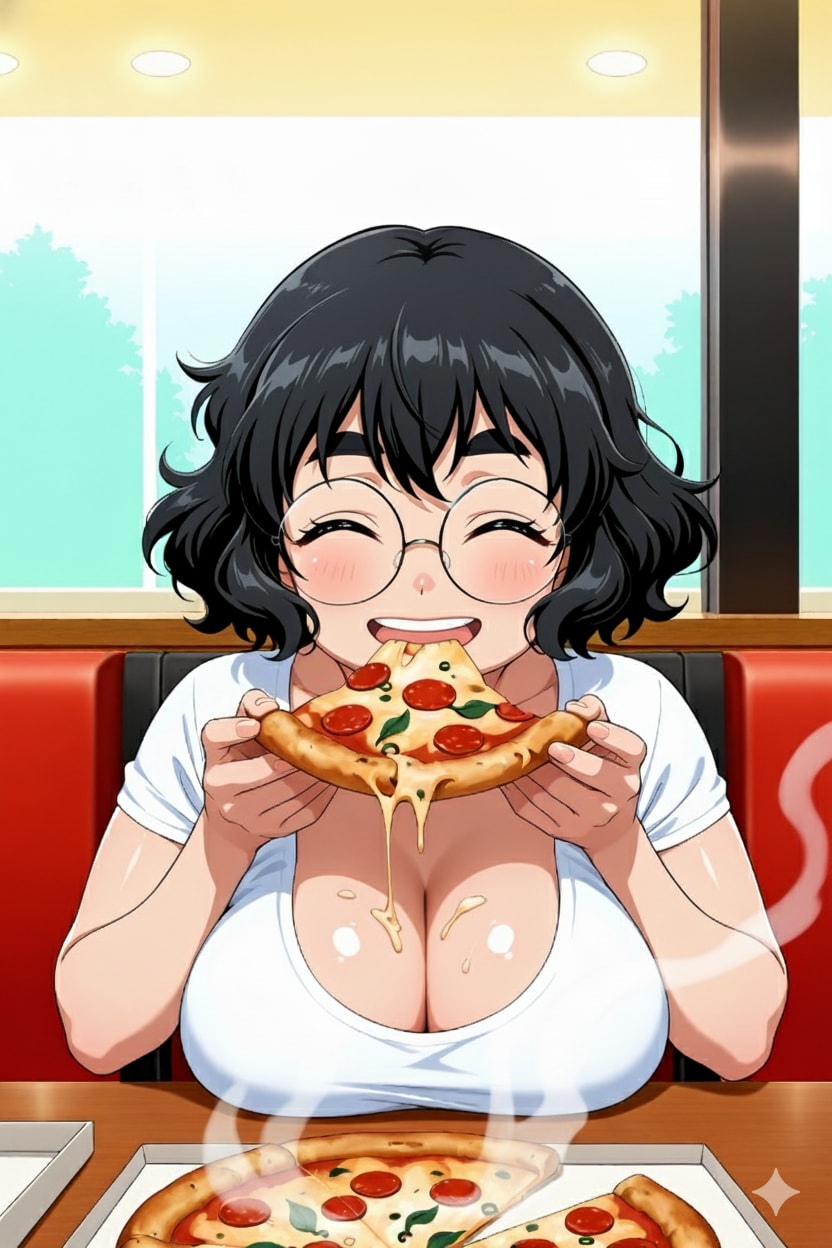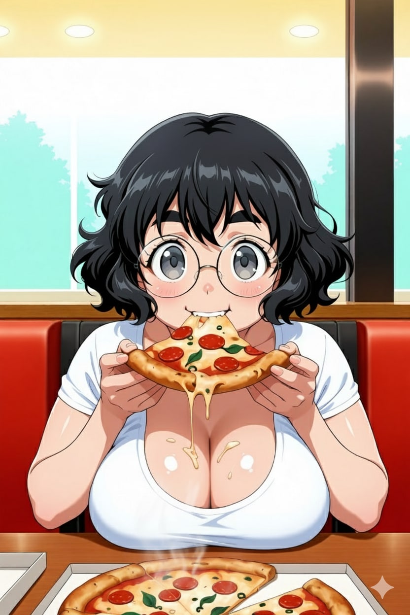 元絵は4枚目だが、これではピザ屋の店員が堂々とピザを盗み食いしているようにも見えるので(にこたまさんだしやりかねん)、Geminiでピザ屋の帽子を削除するなど修正したのが1〜3枚目。
