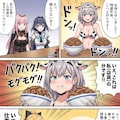 牛柄ビキニで料理を食べる白銀ノエル🐮👙🥩🍚❤️