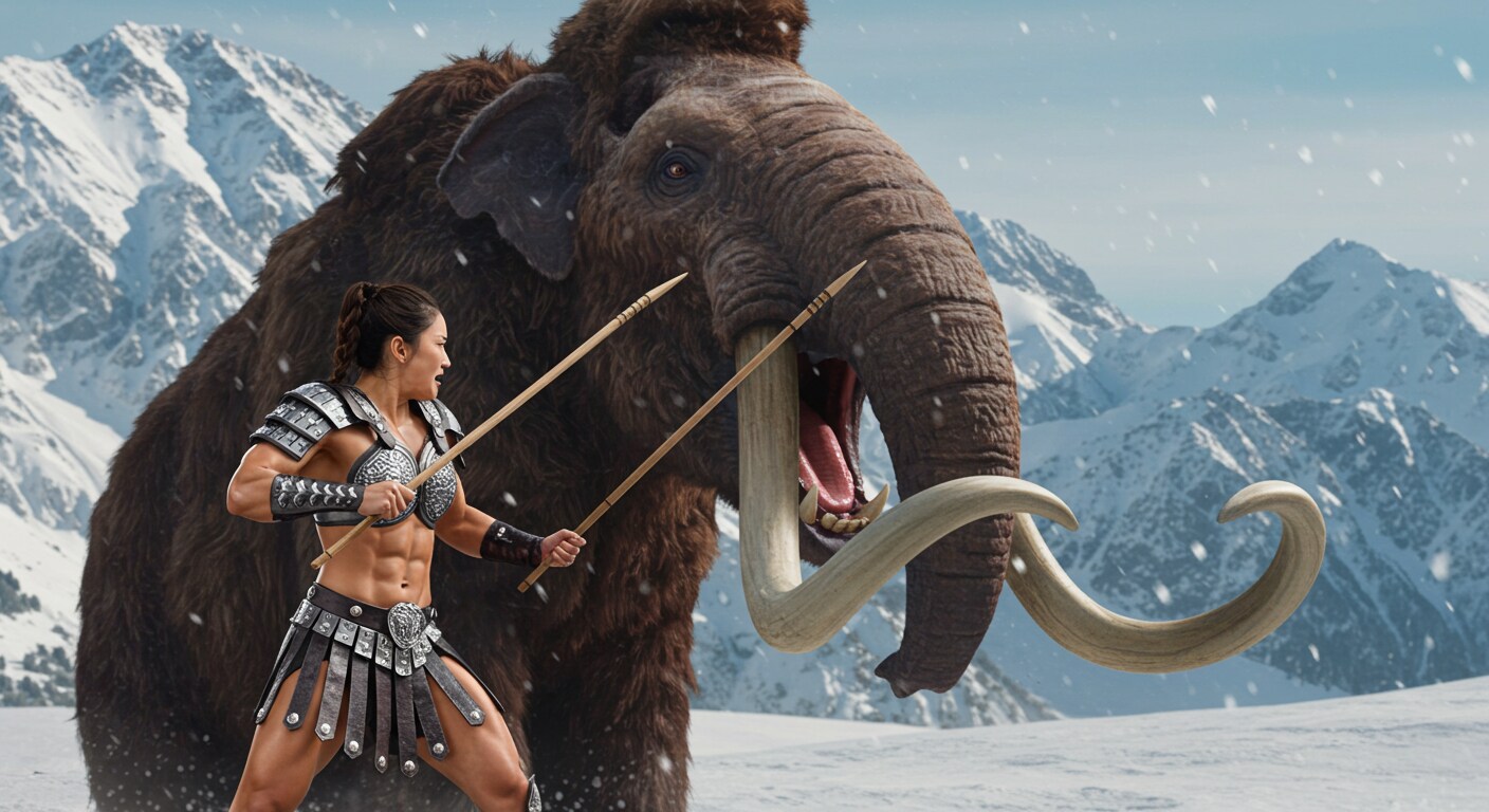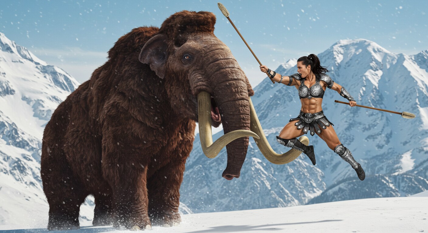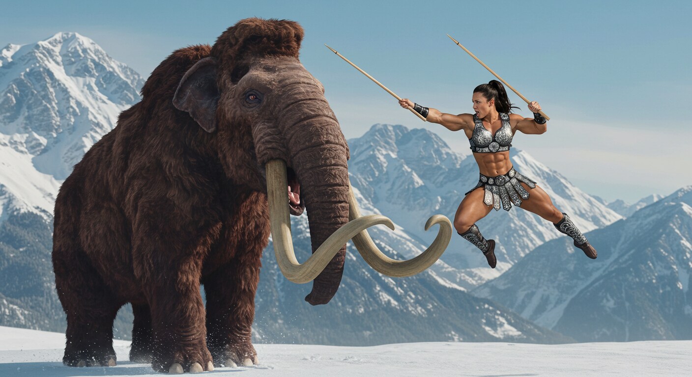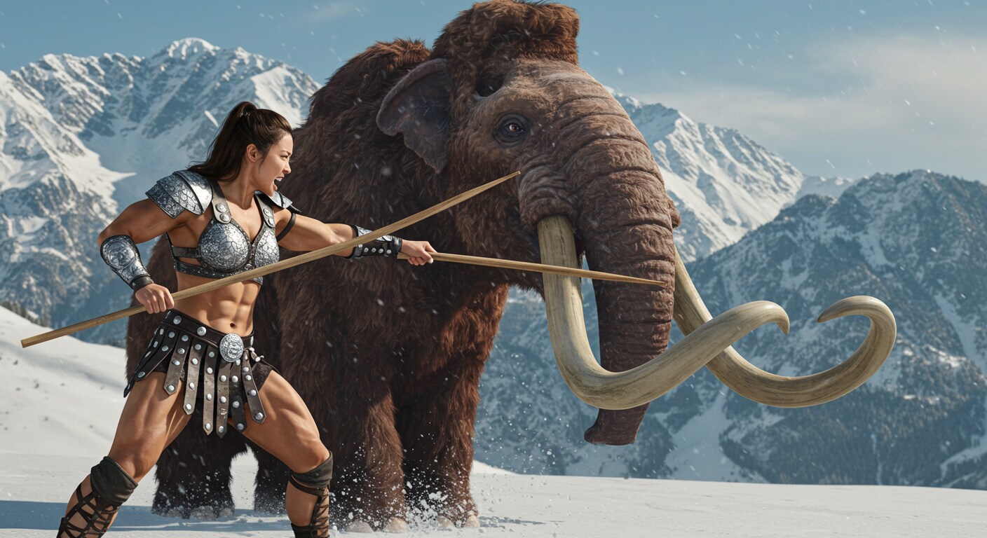 蘇ったマンモスに一人挑む筋肉戦士!2頭に増えて、一人じゃ勝てないっしょ😄