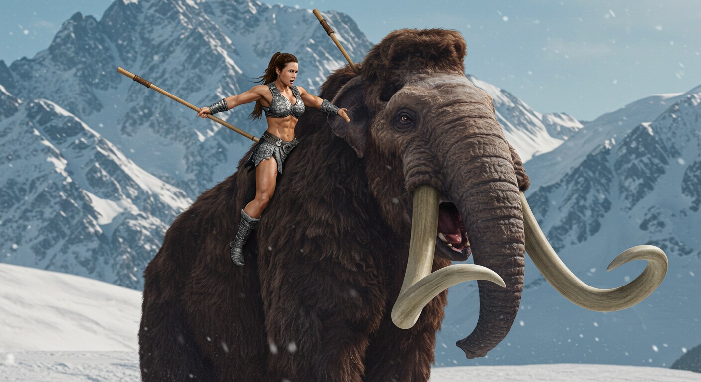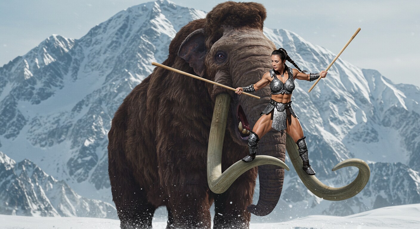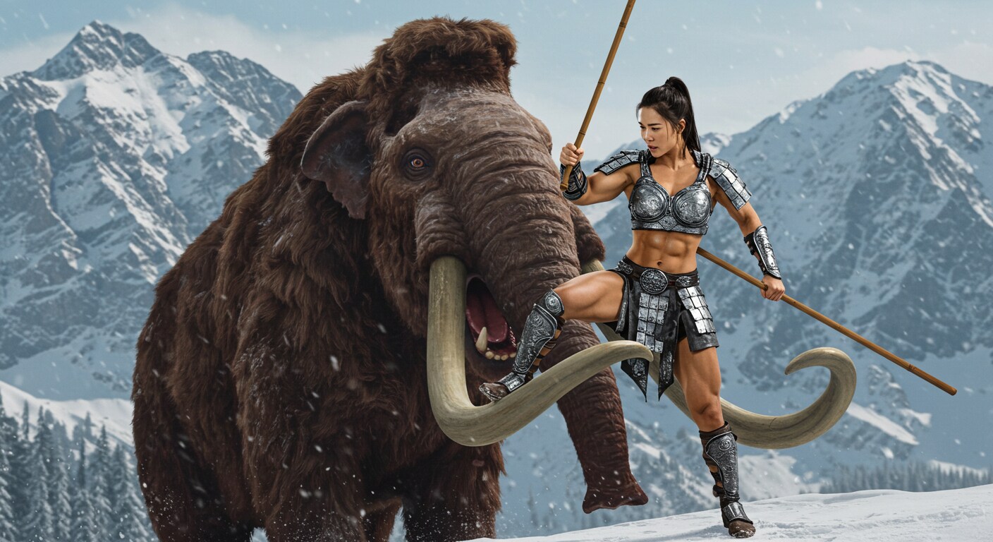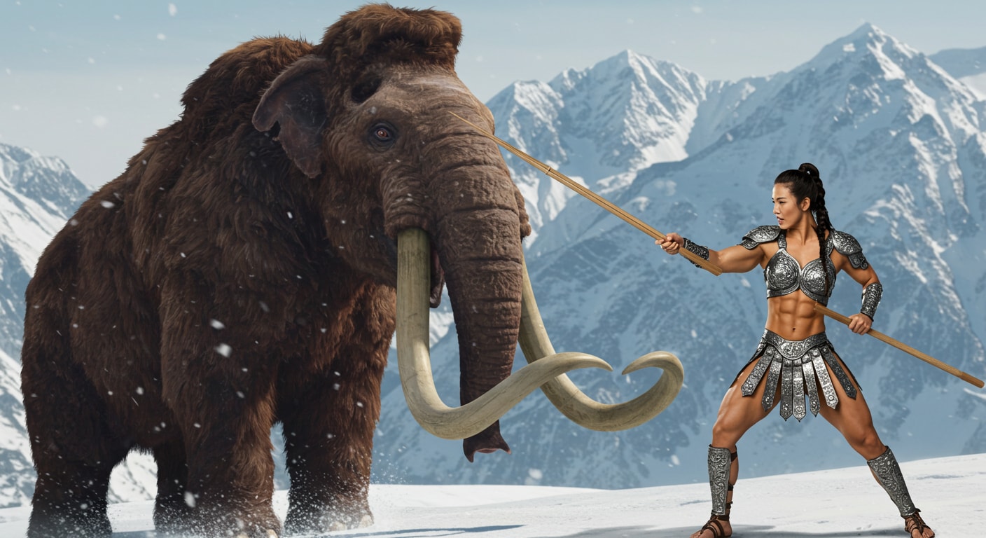 蘇ったマンモスに一人挑む筋肉戦士!2頭に増えて、一人じゃ勝てないっしょ😄