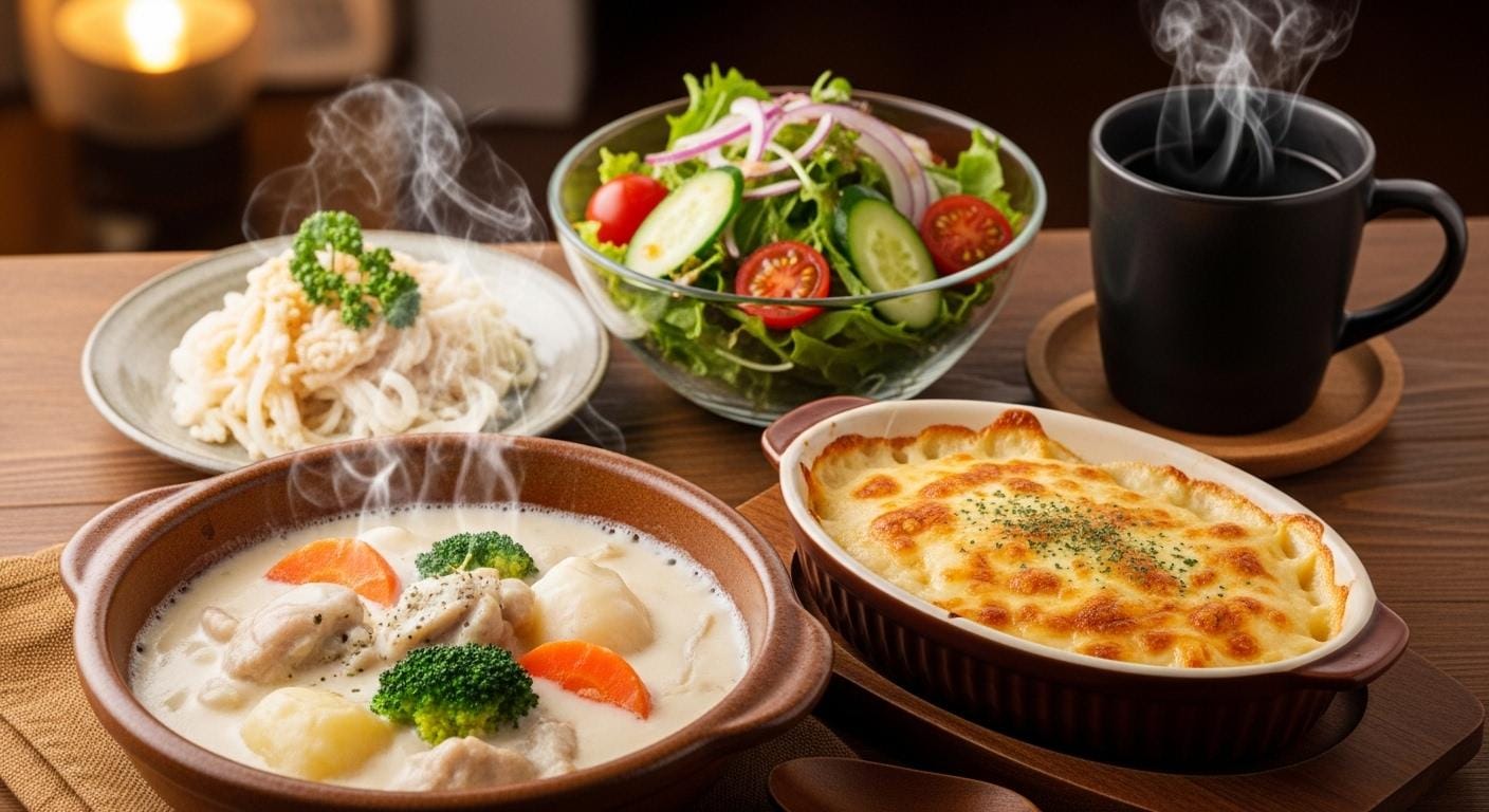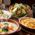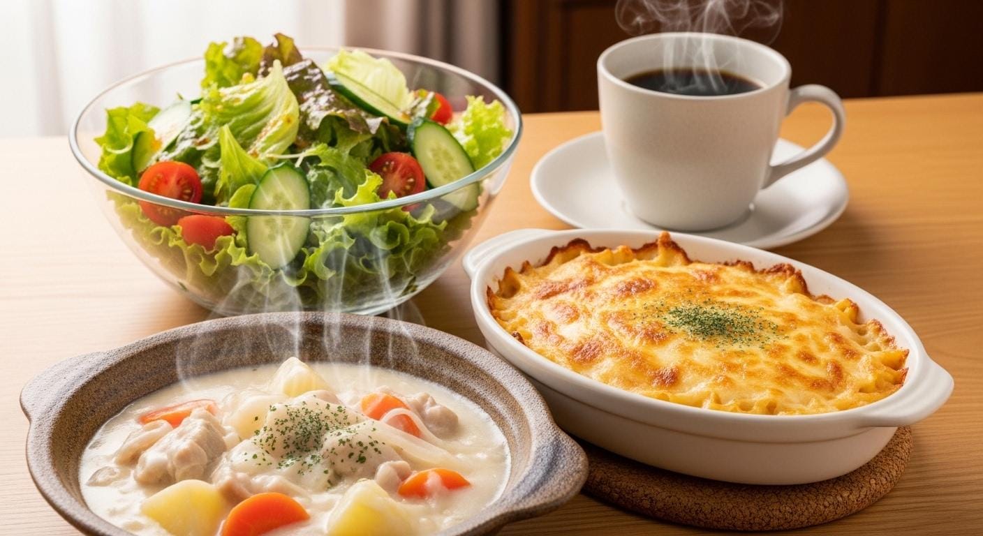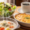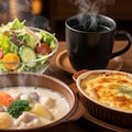 摩訶不思議食堂の牛乳たっぷりクリームシチューとグラタンのセット