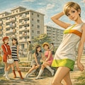4〜6枚目はオマケです。本来は年代が違うので取り上げるのは可笑しいのですが1967年に大流行した「団地とミニスカート」ということで団地カルチャーの代表という事で生成しました。6枚目はかなり意味不明になっていますねw...因みに「ミニスカートの日」は2025年10月18日に取り上げております。