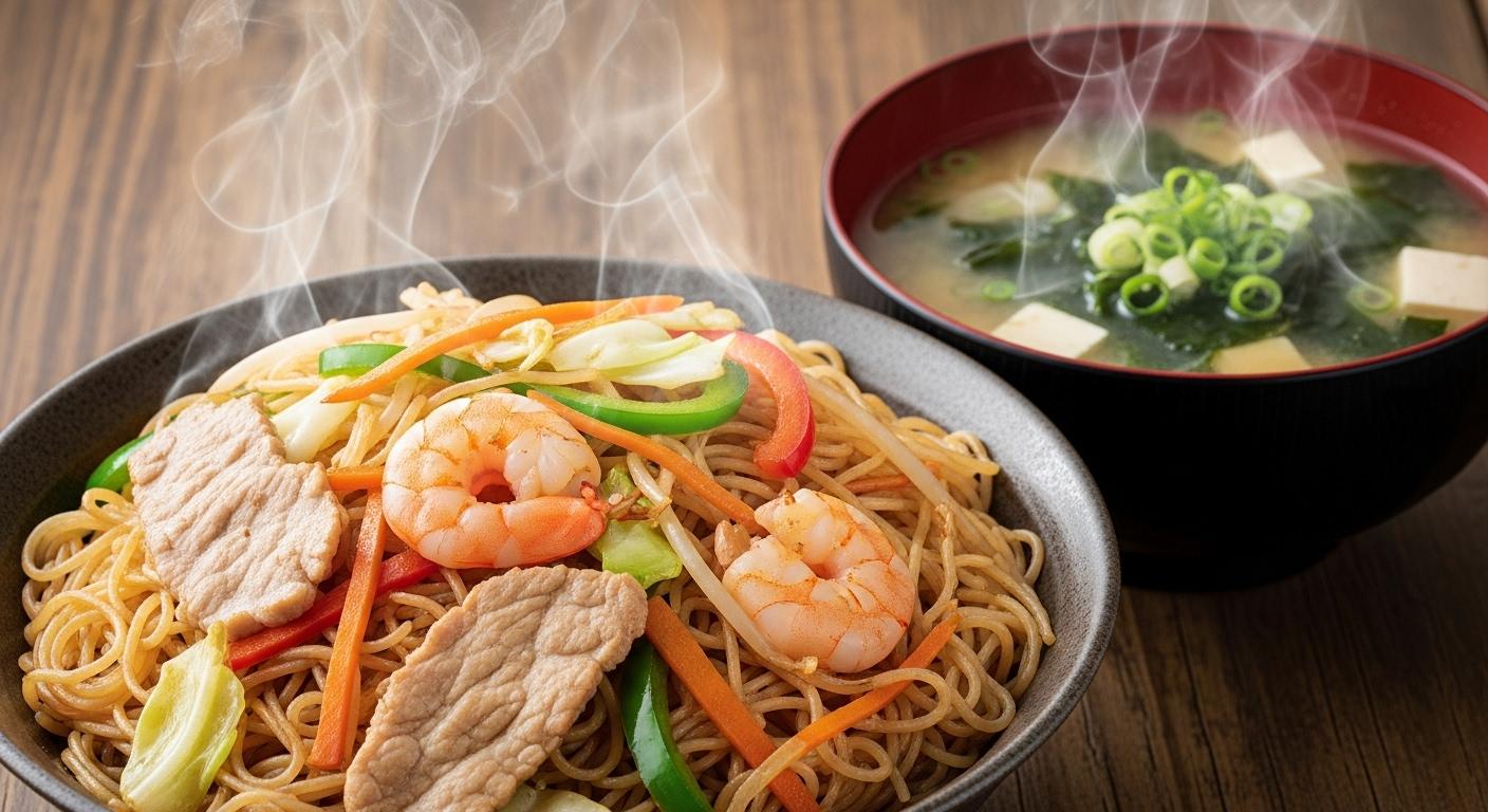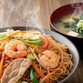 摩訶不思議食堂の焼きビーフンと味噌汁のセット