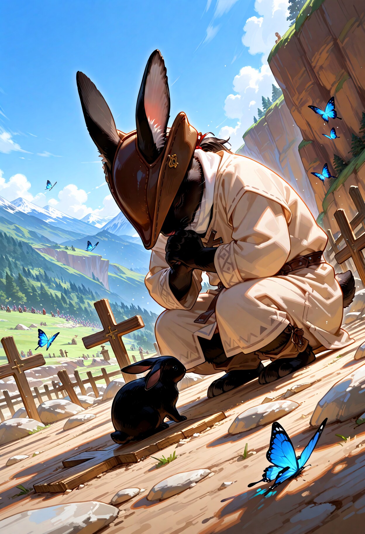 クロウサギは墓前で妻に許しを請うた。