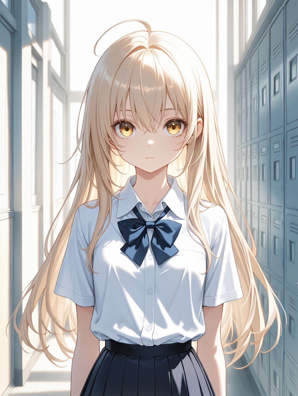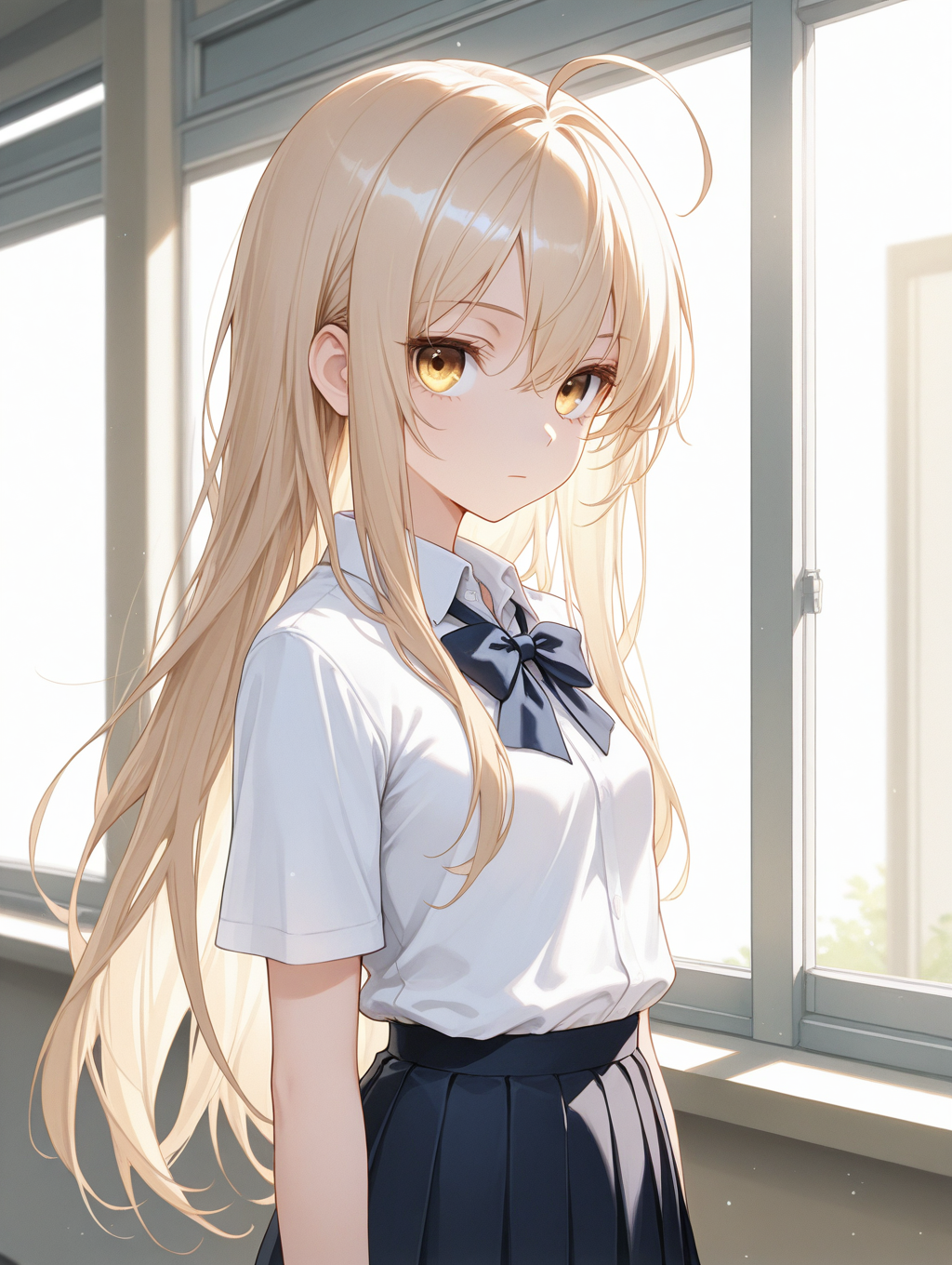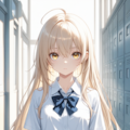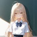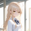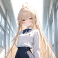 プロンプト: 1girl,thin,beige long hair,beige eyes,ahoge,small_breasts