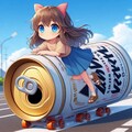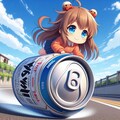 ビール缶に乗って道路を進む小さな女の子