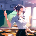jacket partially removed, heart in eye, burnt clothes, holding fishing rod, kanji, doujin cover, pentagram, tape gag, adjusting headwear, red socks, friends, cloud print, coke-bottle glasses, oral invitation, competition school swimsuit, barbell piercing, gradient legwear, prisoner, blood on breasts, wind chime, carrying over shoulder, tape measure, flaming weapon