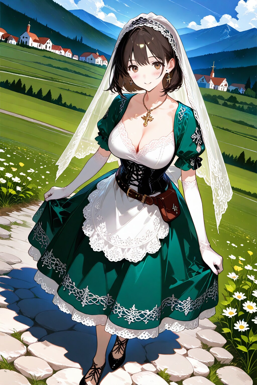 サンマリノの民族衣装は、明確な独自性が確立されておらず、イタリアのエミリア=ロマーニャ地方の影響を受けた中世風スタイルが主流です。女性の衣装は、建国記念祭や「中世の日々」などのイベントで着用され、長いロングドレス、刺繍入りブラウス、白いヴェールやスカーフ、ボディス、エプロンなどが特徴です。色は赤、青、緑などが使われ、アクセサリーとして十字架や宝石が加わることも。日常的には着用されず、観光や歴史再現で対外的に知られています。