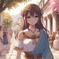 古代ギリシャの街を歩く少女を生成しました。