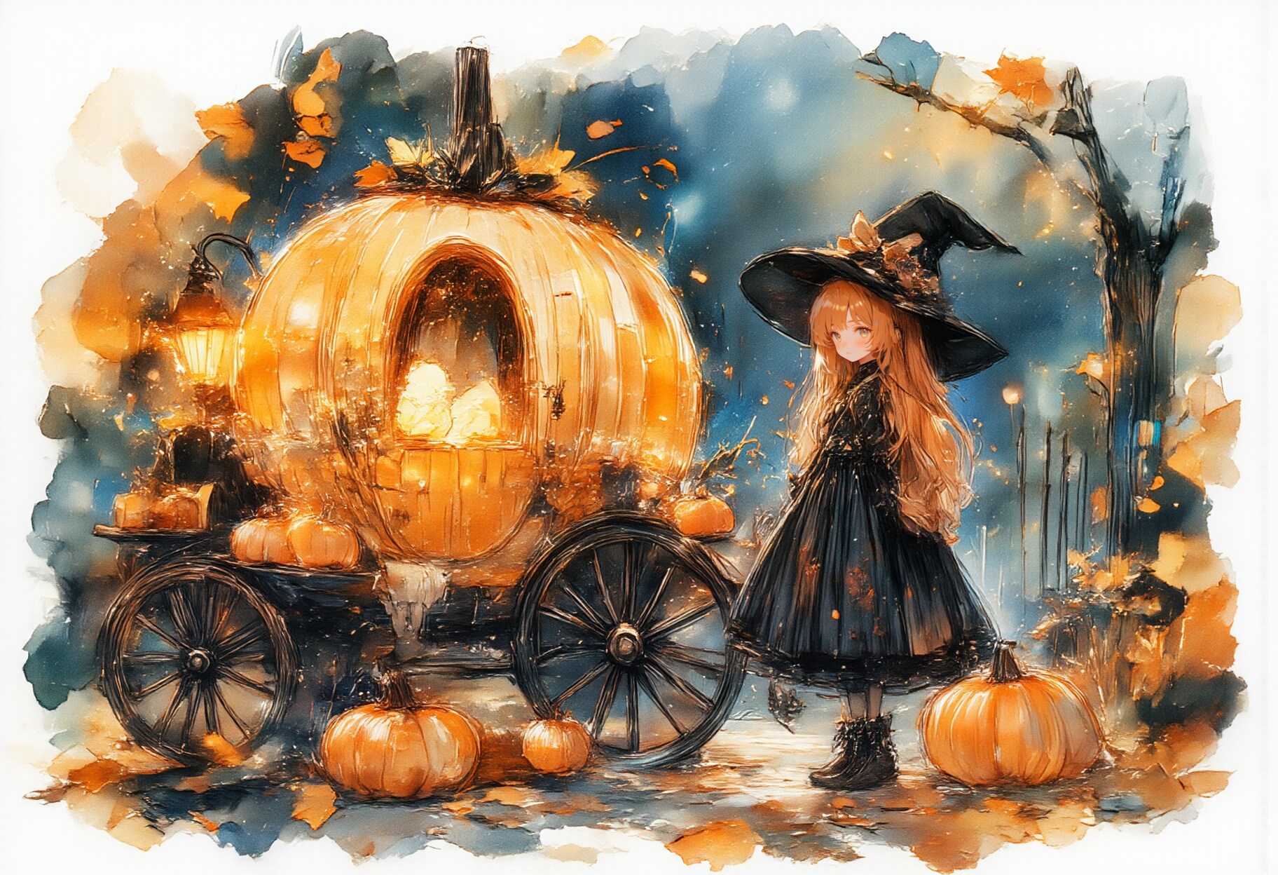 Steps: 30, Sampler: Euler, Schedule type: Simple, CFG scale: 1, Distilled CFG Scale: 3.5, Seed: 2484288670, Size: 1216x832, Model hash: 2abace2516, Model: lyhAnimeFlux_v4Niji, Denoising strength: 0.4, ADetailer model: person_yolov8n-seg.pt, ADetailer prompt: "lyh_niji, A little witch girl\n <lora:NijiCuteStyle:0.8> n1j1", ADetailer confidence: 0.4, ADetailer dilate erode: 5, ADetailer mask blur: 4, ADetailer denoising strength: 0.7, ADetailer inpaint only masked: True, ADetailer inpaint padding: 32, ADetailer use separate checkpoint: True, ADetailer checkpoint: lyhAnimeFlux_v4Niji [2abace2516], ADetailer use separate VAE: True, ADetailer VAE: lyh_anime_flux_ae.safetensors, ADetailer model 2nd: face_yolov8n.pt, ADetailer prompt 2nd: "lyh_niji, A little witch girl\n <lora:NijiCuteStyle:0.8> n1j1", ADetailer confidence 2nd: 0.4, ADetailer dilate erode 2nd: 4, ADetailer mask blur 2nd: 4, ADetailer denoising strength 2nd: 0.7, ADetailer inpaint only masked 2nd: True, ADetailer inpaint padding 2nd: 32, ADetailer use separate checkpoint 2nd: True, ADetailer checkpoint 2nd: lyhAnimeFlux_v4Niji [2abace2516], ADetailer use separate VAE 2nd: True, ADetailer VAE 2nd: lyh_anime_flux_ae.safetensors, ADetailer version: 24.11.1, Hires upscale: 1.5, Hires steps: 20, Hires upscaler: Latent, Lora hashes: "aidmaMJ6.1_v0.5_3: 248c70f4d245, flux micro: cb06744a42ce, WATERCOLOR-lora.TA_trained: 1926c27a39ac, halloween_pumpkin_crawing: 6114c74336f9", Version: f2.0.1v1.10.1-previous-528-ge55cde9b, Module 1: clip_l, Module 2: t5xxl_fp16, Module 3: lyh_anime_flux_ae