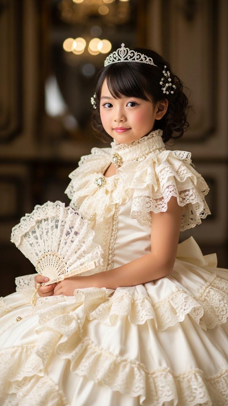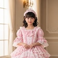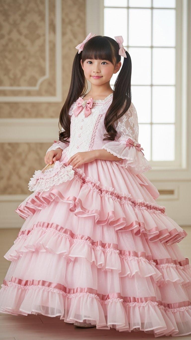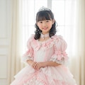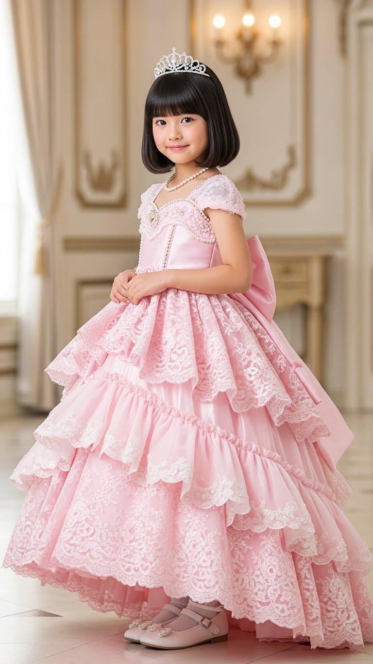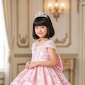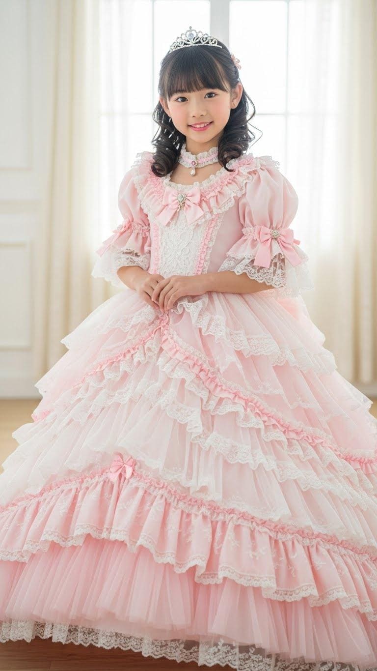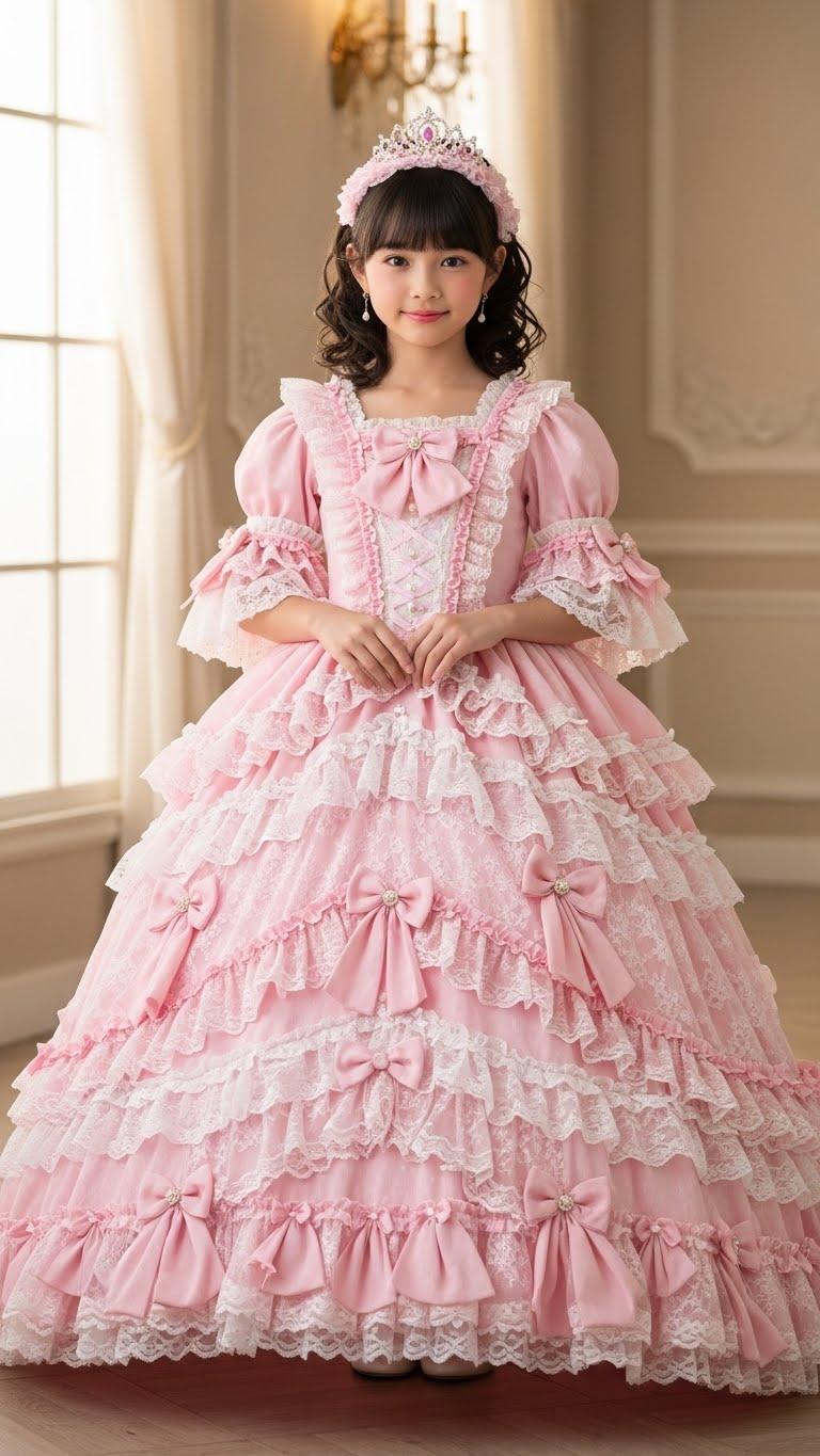 すごいフリフリのプリンセスドレスの女児ですわね。
