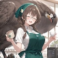 ラテアートの画像は全て外部生成。ラテアートの画像を作ってる時に鳥の模様を作ったら本物の鳥が入り込んだのもあって面白い感じになったかな…と。眼鏡三つ編み模様のラテアートの方も他にラテアートを作ってる方々のプロンプトなどを参考に色々作ってみてこれまでとちょっと雰囲気が違う感じになったかと思います。