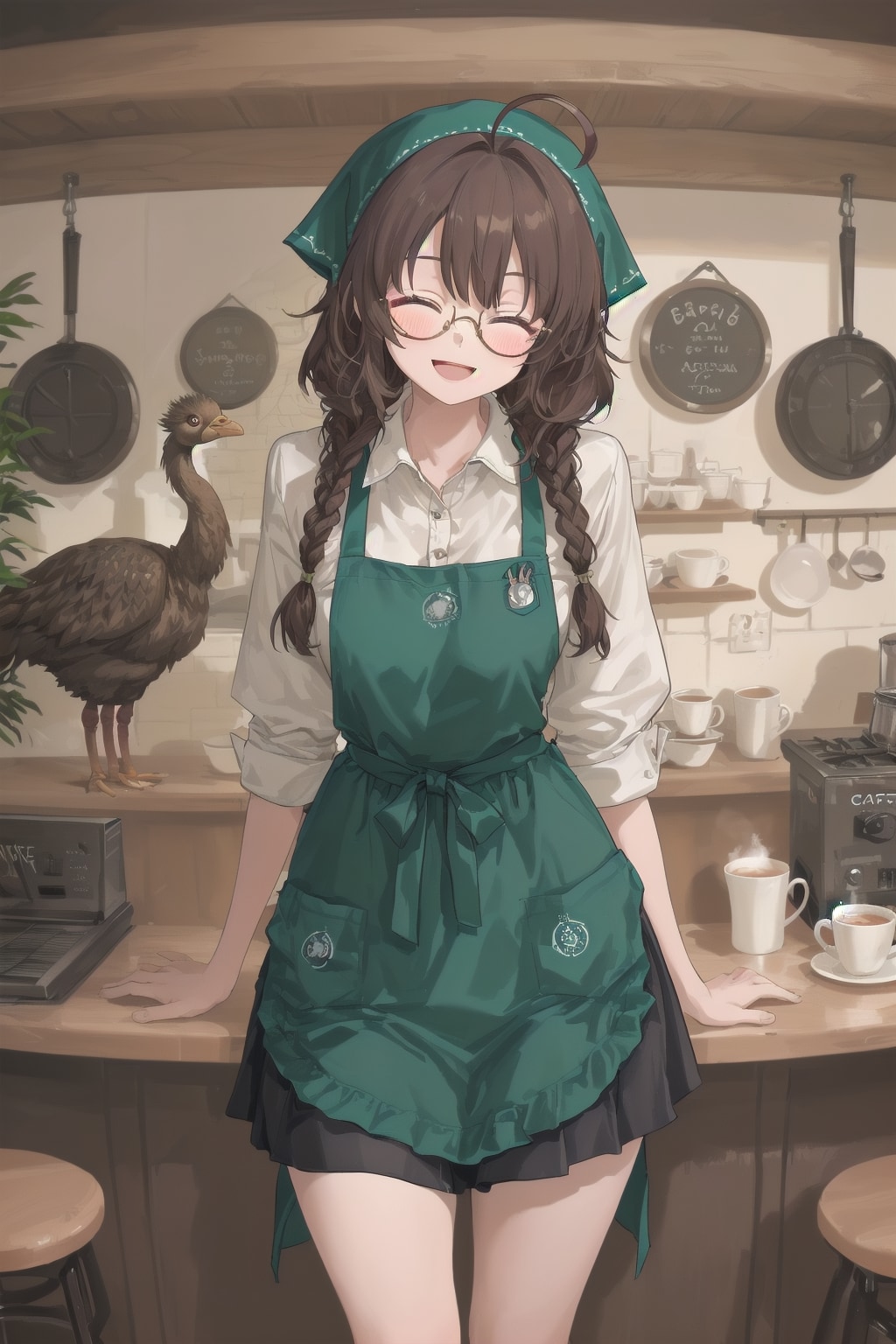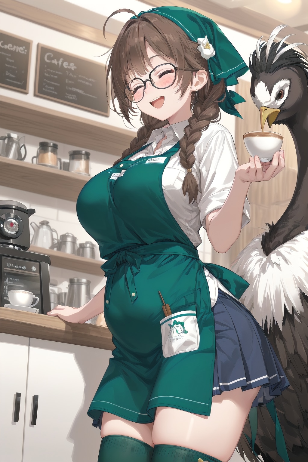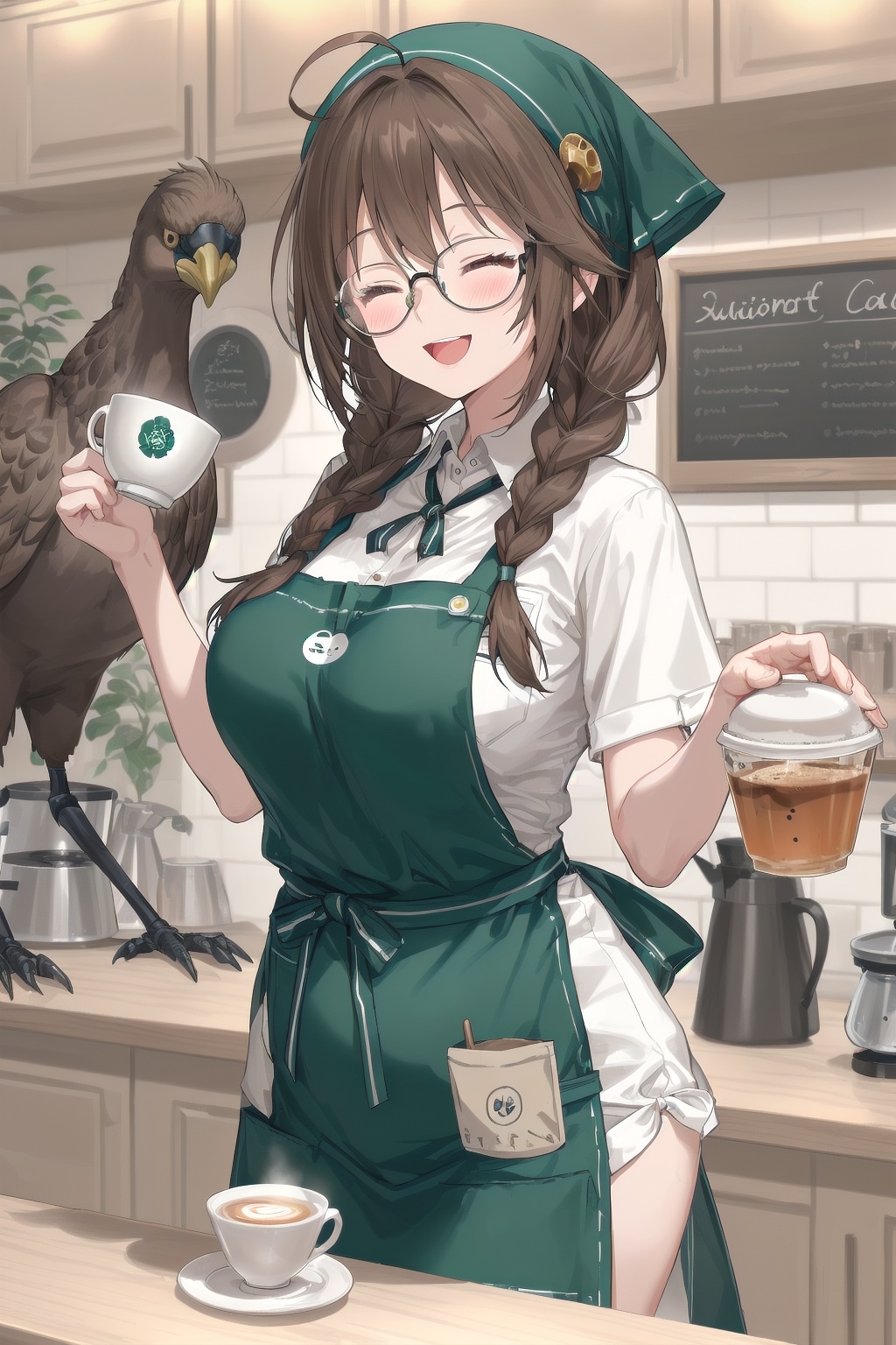 6月の前回のスーパーちちぷい企画で眼鏡三つ編みなラテアートを作るカフェのネタをやったのですが、それを鳥類の集い企画と組み合わせドッグカフェならぬ「バードカフェ」として再度ネタにした次第です。