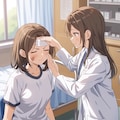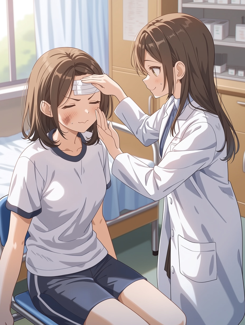 授業か部活で怪我をして治療をうける女の子です。
