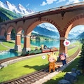 世界遺産に登録されているスイスのレーティッシュ鉄道アルブラ線のフィリズール駅とアルバノイ駅の間にある世界で最も有名な鉄道橋の1つと言っても過言ではないランドヴァッサー高架橋は長さ142m高さ65mで5つの橋脚とアーチが美しい石造りの高架橋ですがうまく生成できませんでした!(早口)