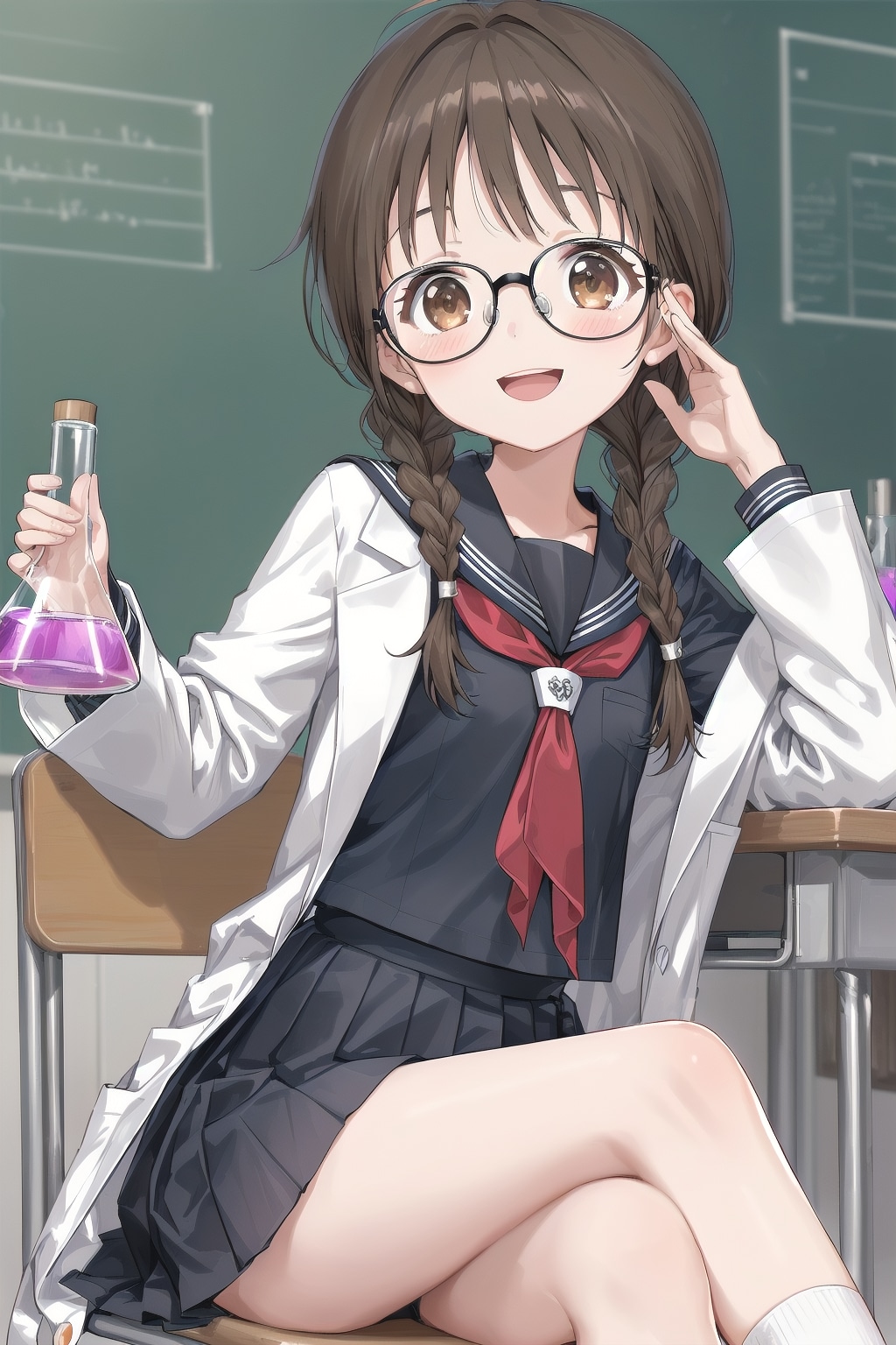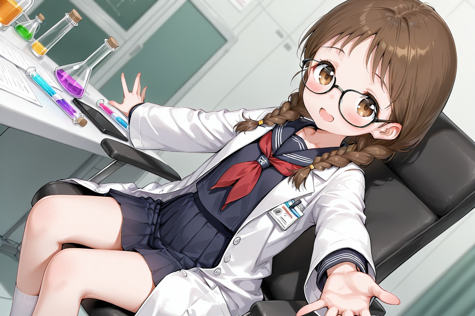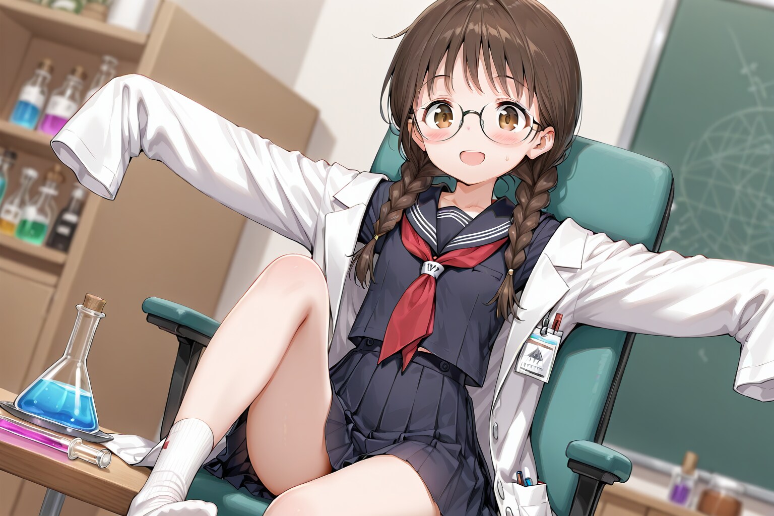 サイエンス、と聞いてさてどうしたものか、と思いましたが直近でしおりさんがマッドサイエンティストをやっていたのもあってそれと繋げる形で生成してみました。