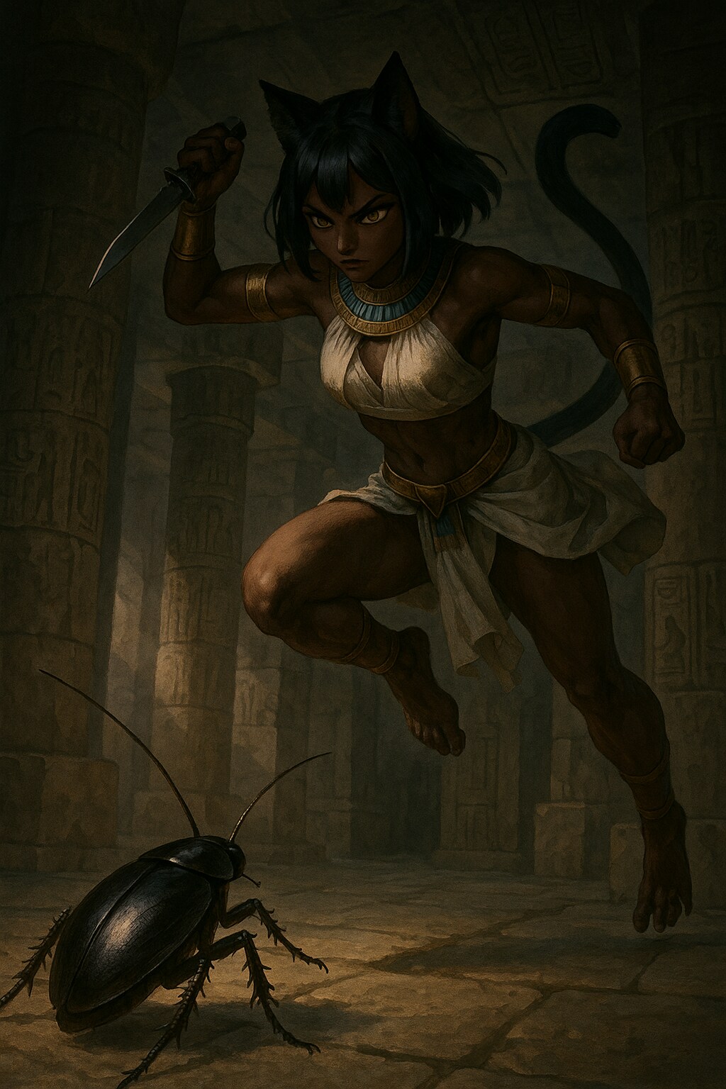 1枚目 : 褐色エジプト猫耳ロリ VS 古代エジプト名物超巨大ゴキブリ