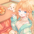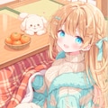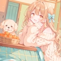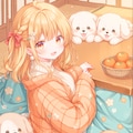 ぬくぬくこたつに入ってあたたまる子犬たちと女の子を作ってみました。