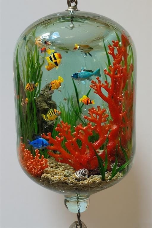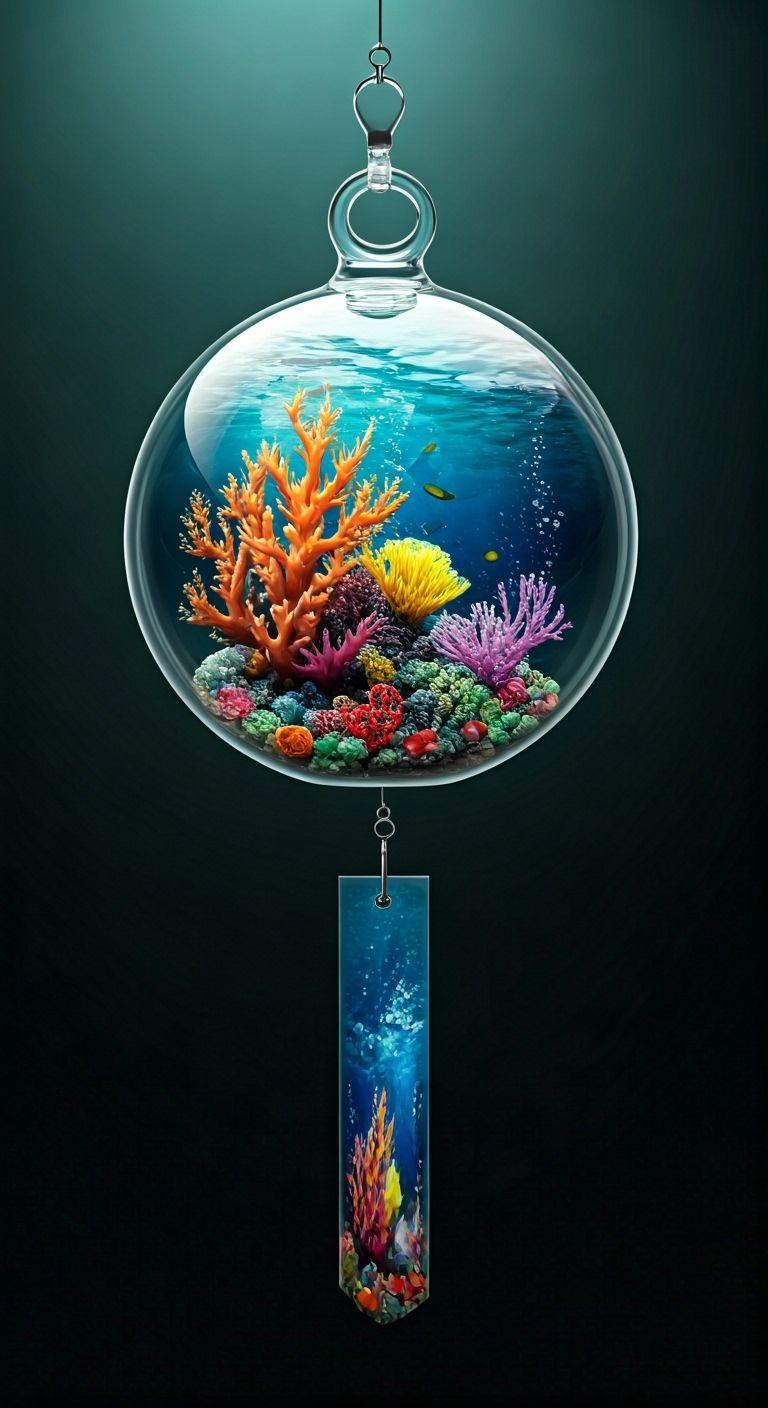 熱帯魚が泳いでいてトロピカルな海を感じられる模様の風鈴