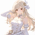 髪はベージュでロングヘア。キラキラアイドルなので shiny hair。ぱっつんにならないぐらいに前髪指定あり。目はブラウンで公式でたれ目。droppy eyes も指定しました。