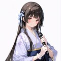 普段はおしとやかだけどイケメン韓流とねこを見ると興奮して豹変、え◎く見えてしまうという男性向きな設定があるそ~ですが、再現が困難というかコラボお礼絵でそれはNGなのでボツ。作詞や作曲に集中しているところにインタビューするのも変だなあと思いボツ。