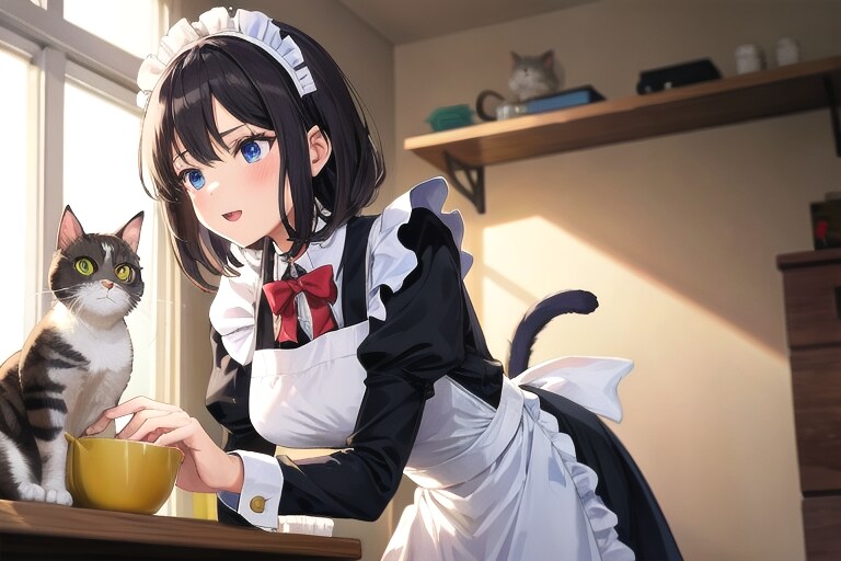 4枚目 1girl,cat,maid