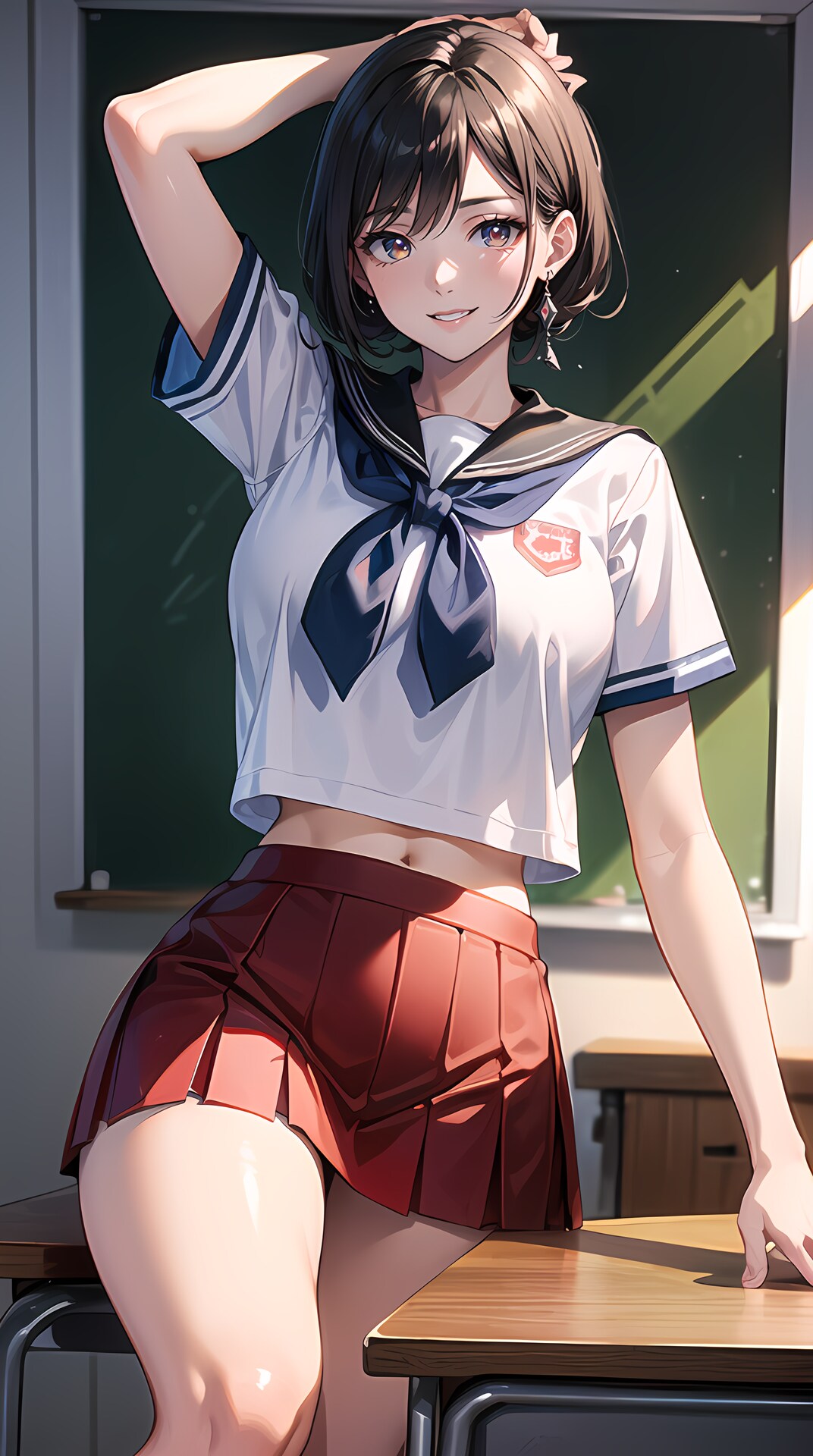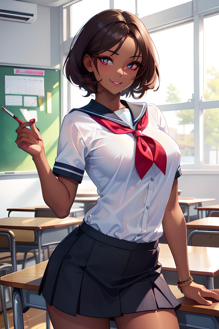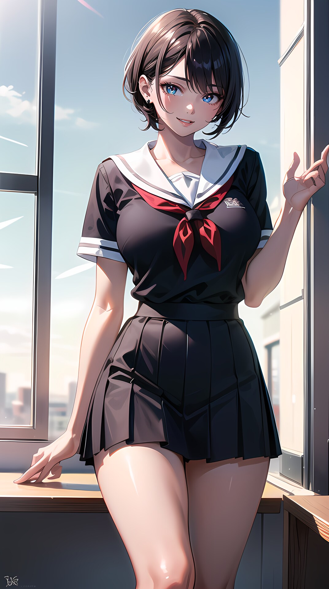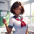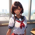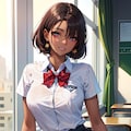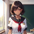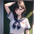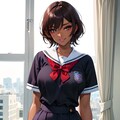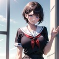 セーラー服黒髪ショートJKです。季節的に冬なのに制服が半袖になってしまい