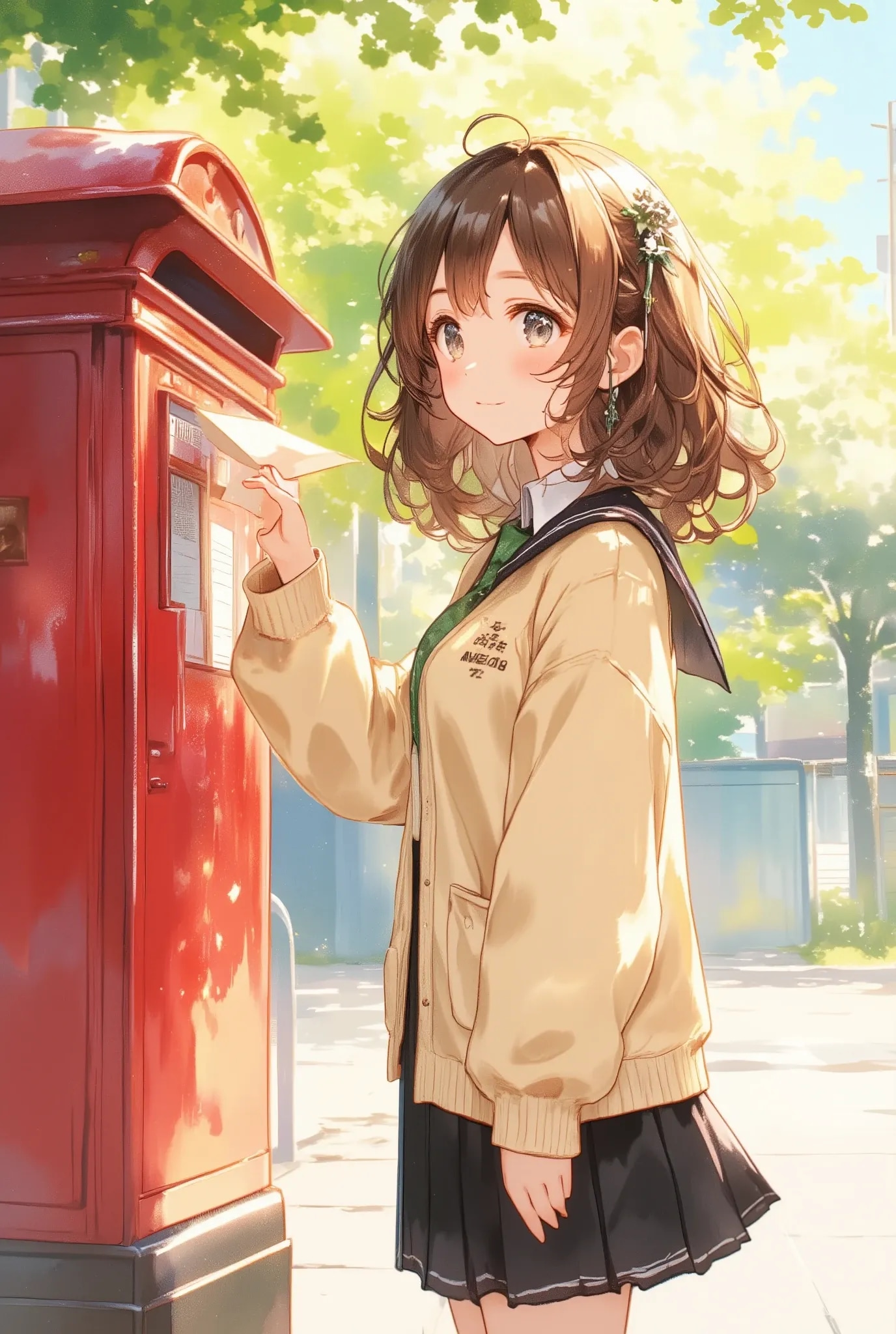 「朝の登校風景」ってお願いするつもりだったのが「投稿風景」になってたので、お手紙入れてるところになりました(^^;