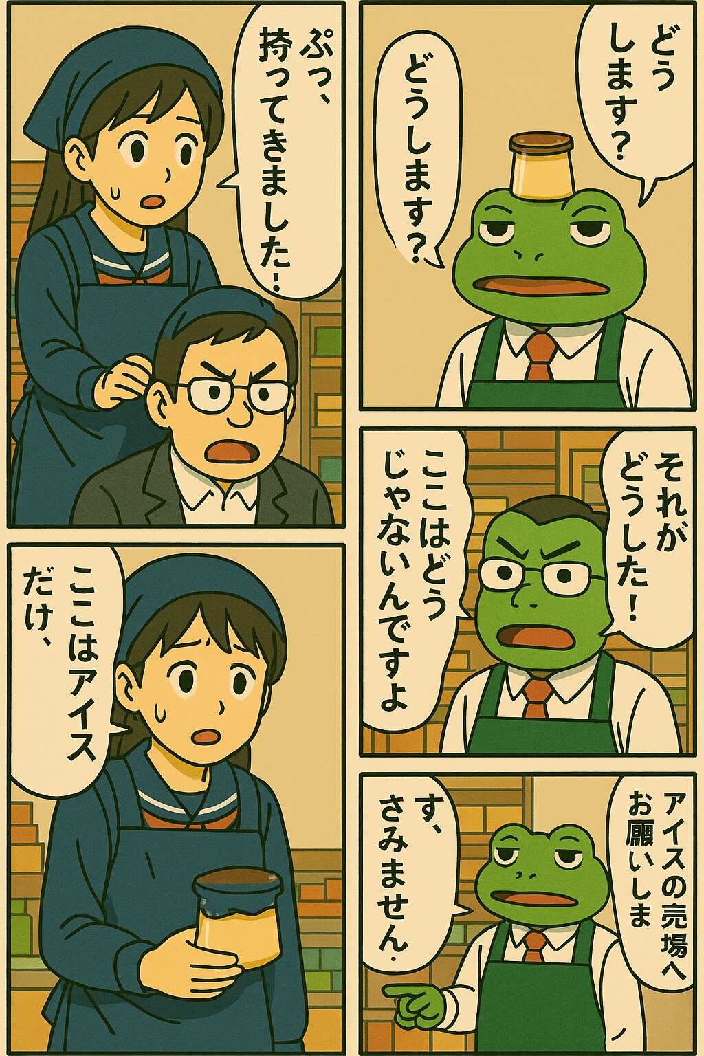 プリンの押し付け合いになった