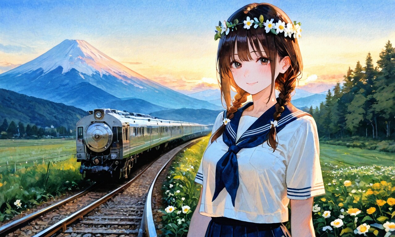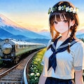 危ない女子高生と富士と列車