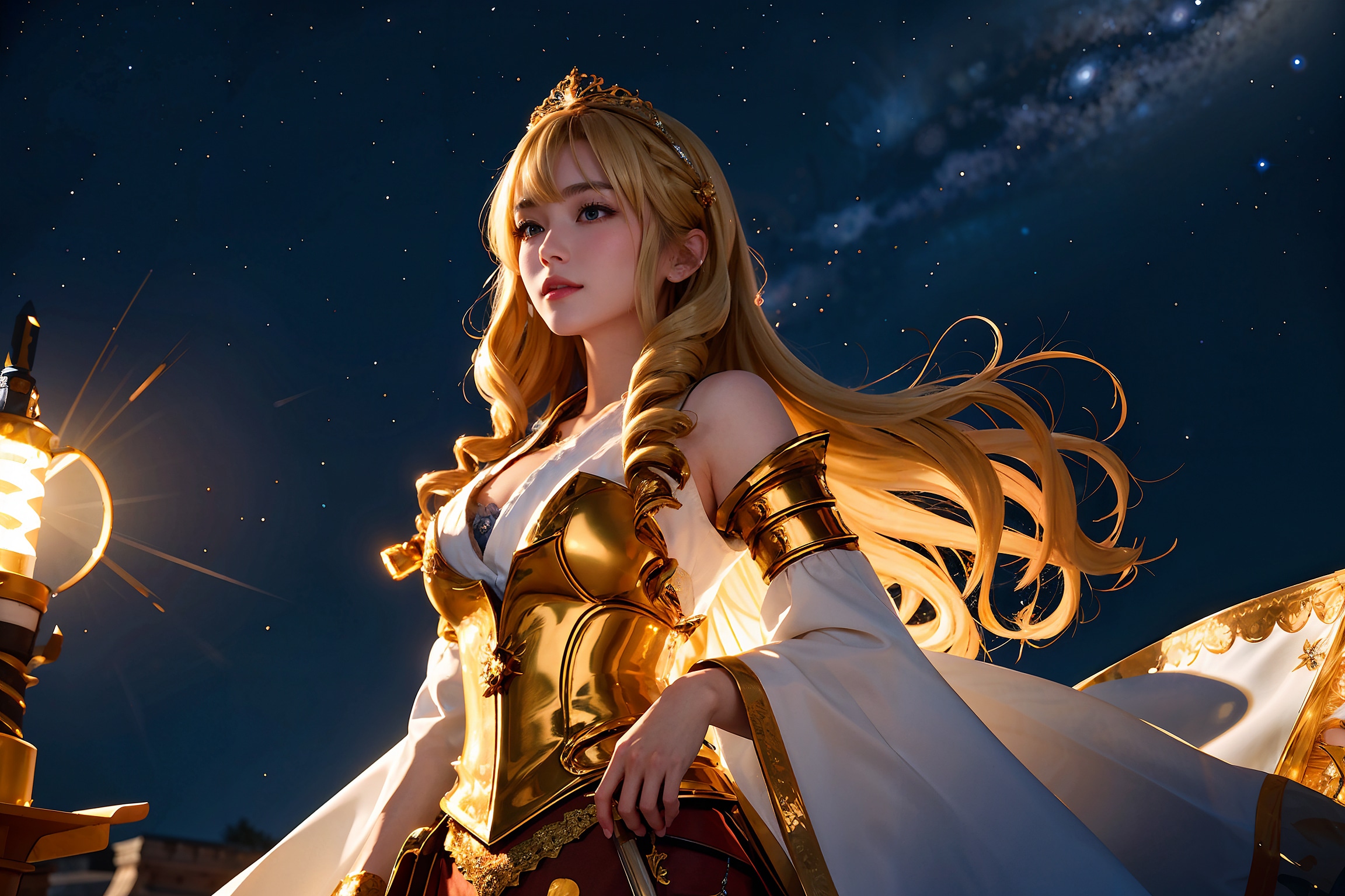 ドリルっぽい髪型を生成したくなったので、剣姫などプロンプトを一部変更して頑張ってみました。