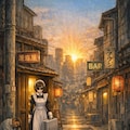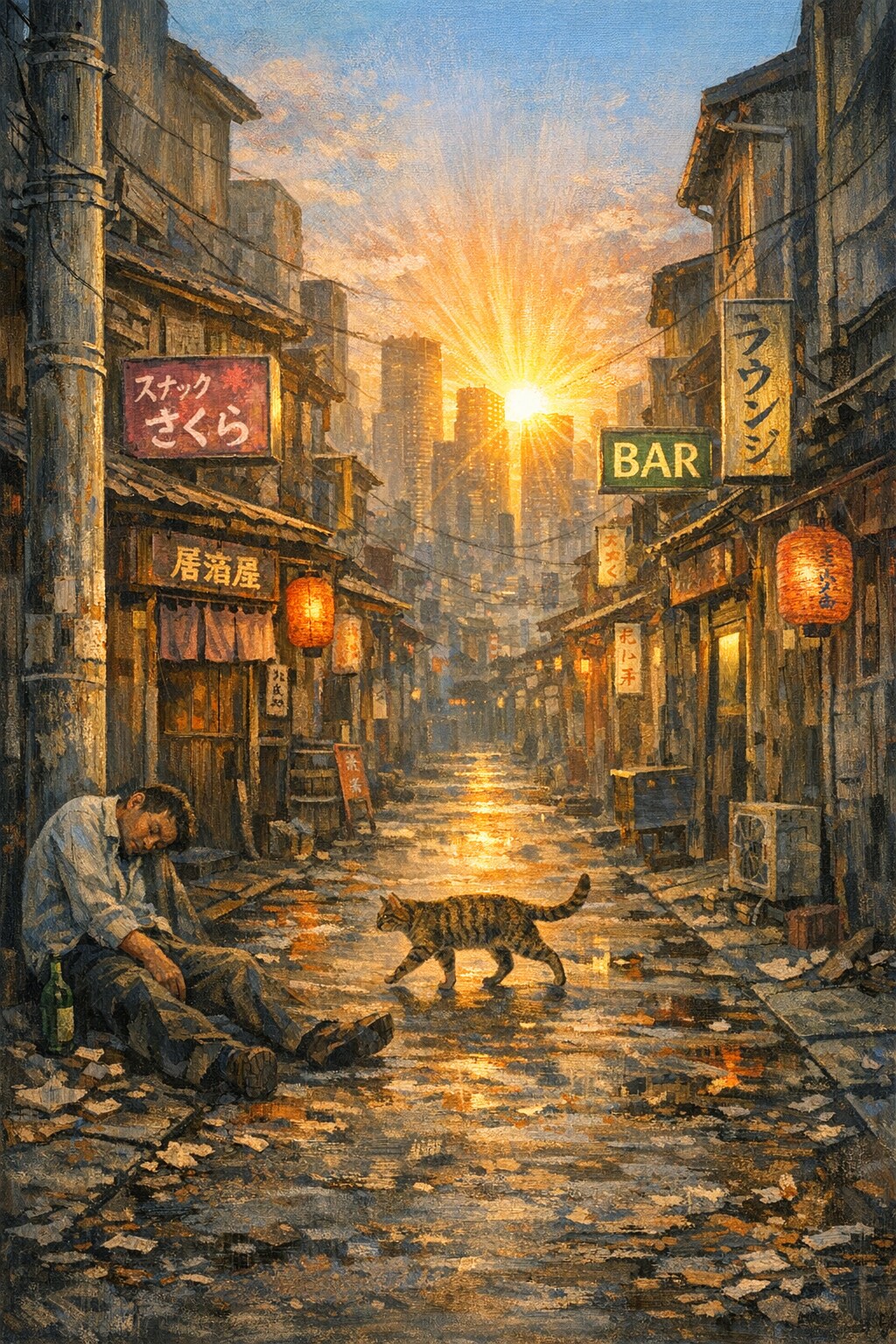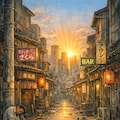 明け方、繁華街からひとつ入った静かな路地裏