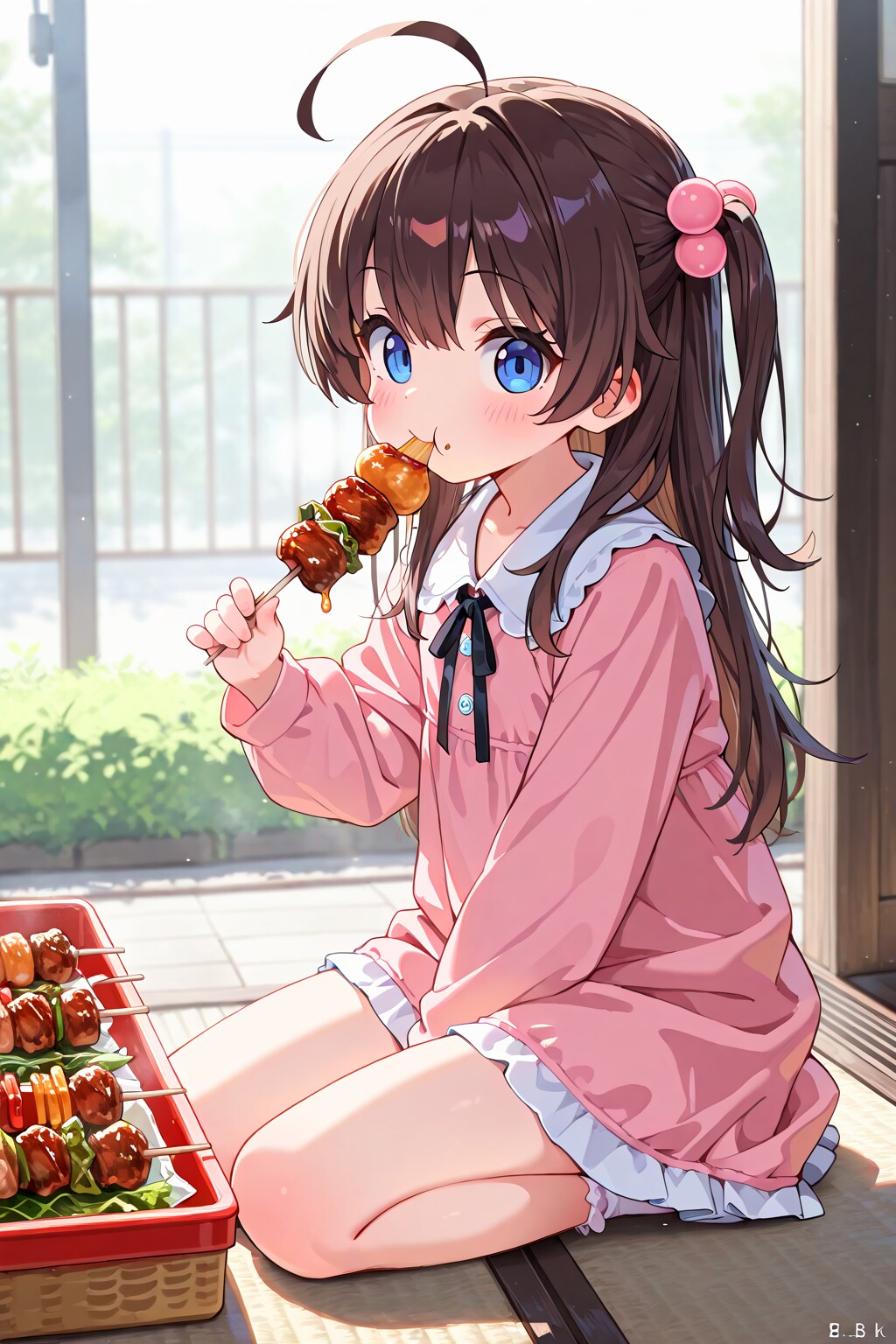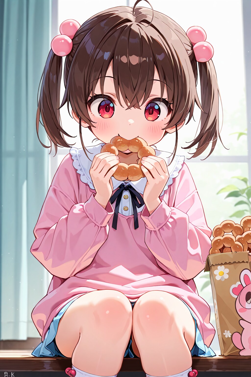 (masterpiece, best quality, ultra detailed, 8k, 4k, hires, absurdres:1.4),(loli,little,ultra cute kawaii:1.4),safe,1 girl,eating,