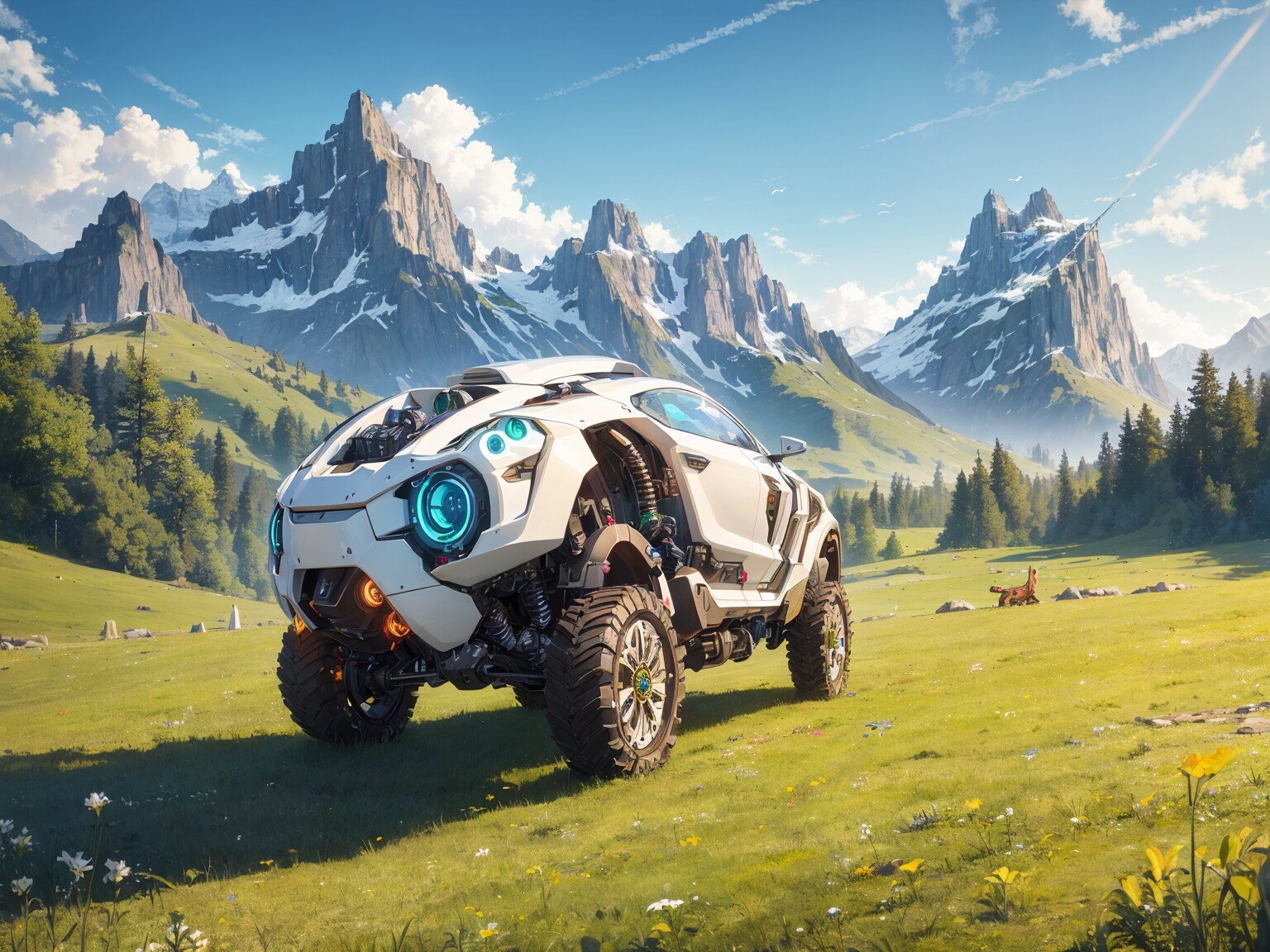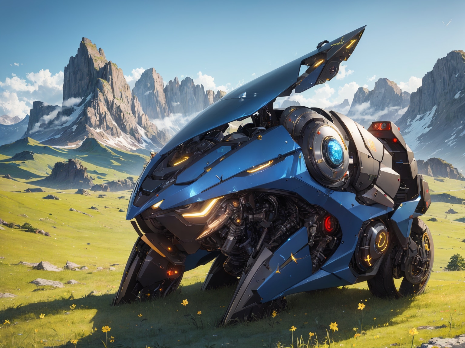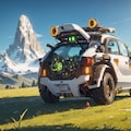 「stable diffusion」でも「サイボーグアニマル」の生成で乗り物が出ます。