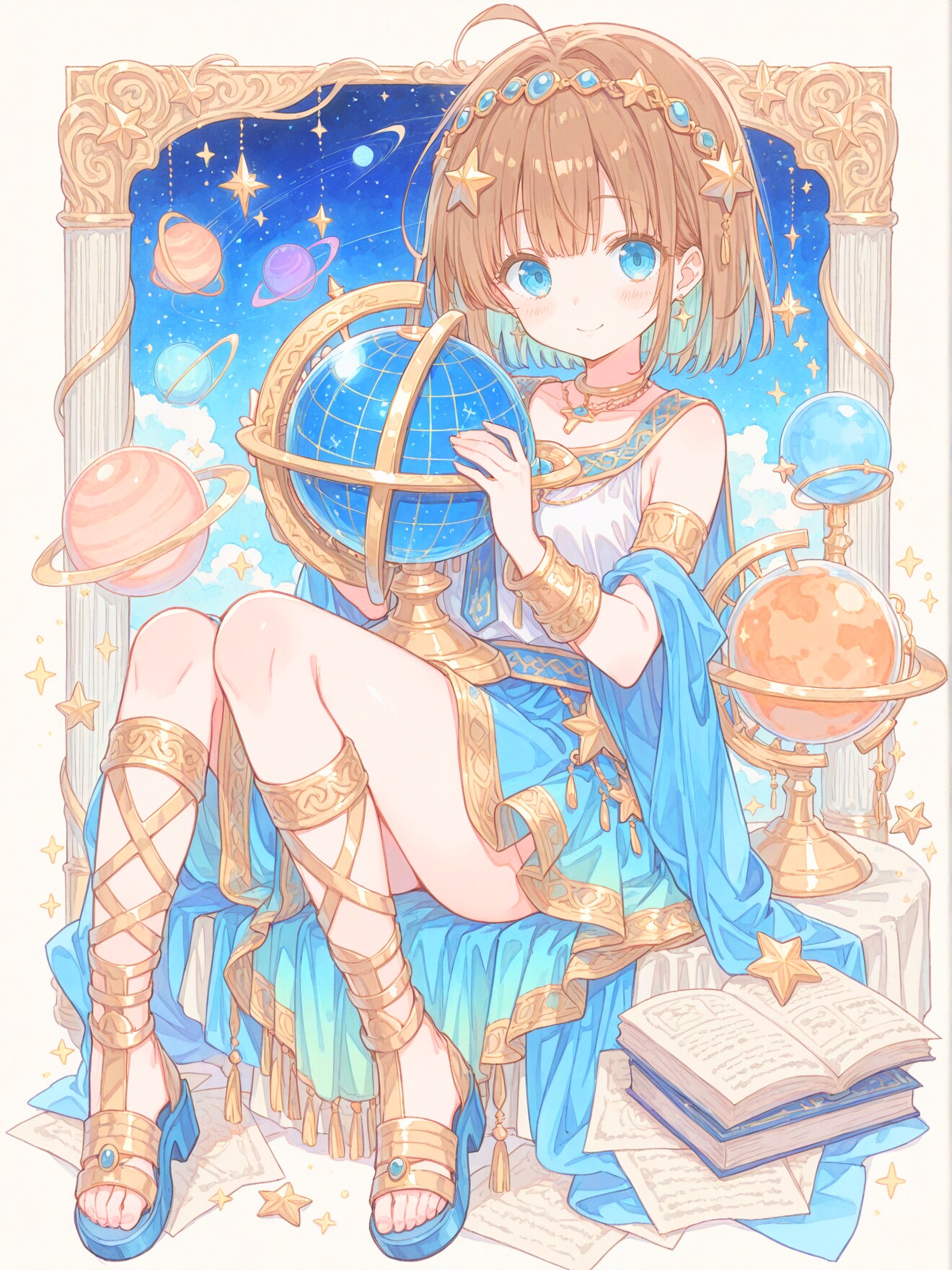宇宙の神秘を探求する古代の天文学者の女の子を作ってみました