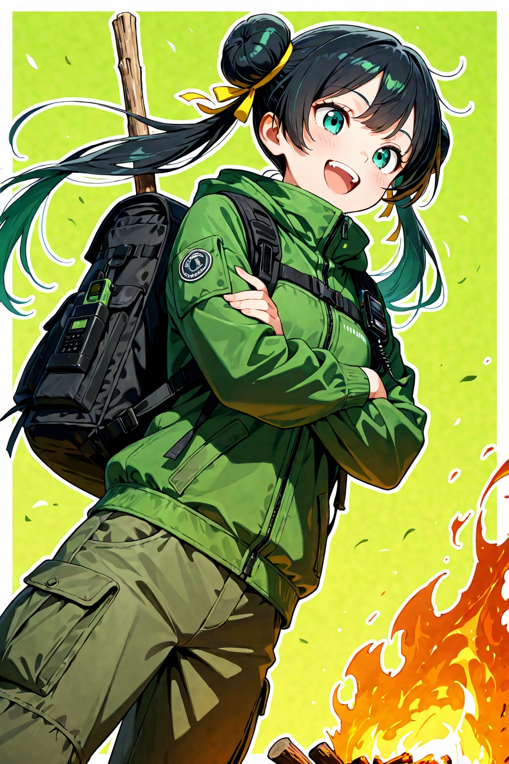 お団子ツインテール・焚火・無人島