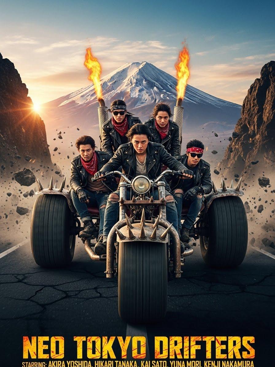 荒廃した近未来の日本。文明は崩れ、夜明けだけが希望だった。ヤンキーの若者たちは、鉄屑を溶接した三輪トライクに跨り、初日の出を目指して走り出す。旗代わりの特攻服、改造マフラーの咆哮、敵対勢力との死闘——だが彼らの暴走は破壊ではない。失われた「明日」を取り戻すための儀式だ。朝焼けが地平を裂く瞬間、アクセルは祈りに変わる。マッドマックス級の狂気と、日本ヤンキー文化の魂が衝突する、夜明け限定ロードムービー誕生。生き残るのは、誰だ。