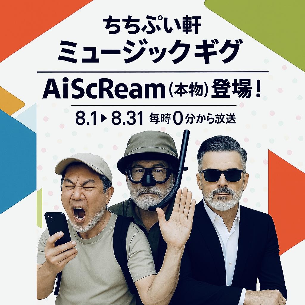 ちちぷい学園にあるちちぷい軒の店内放送番組ミュージックギグ。8月はAiScReam(本物)が登場します。
