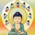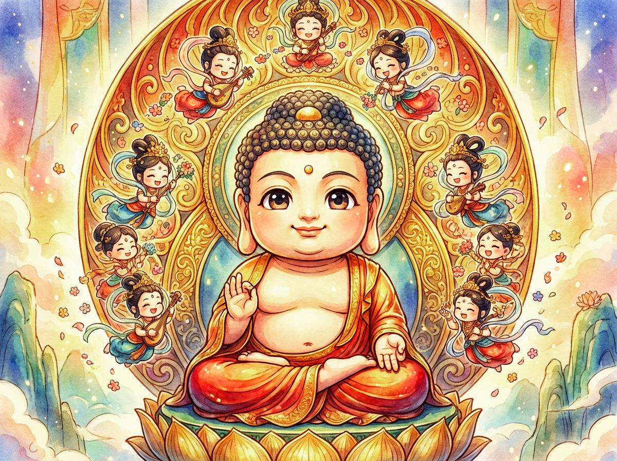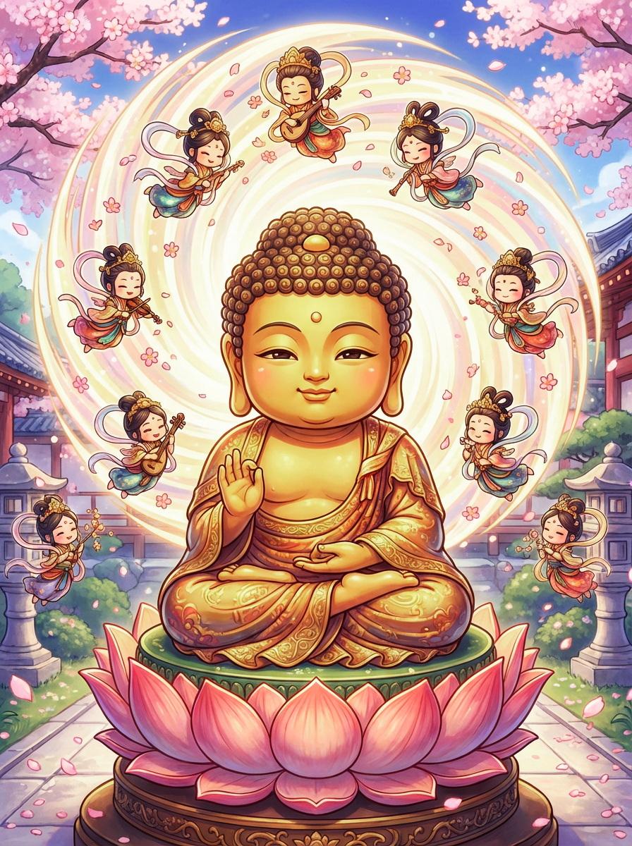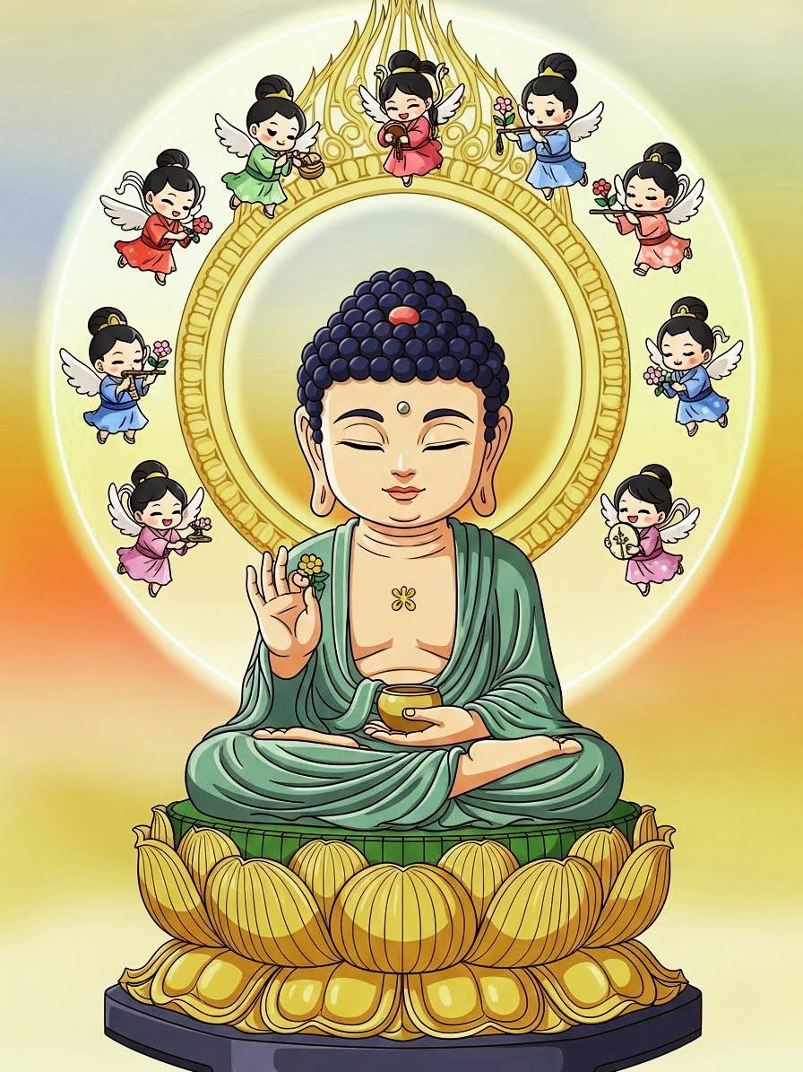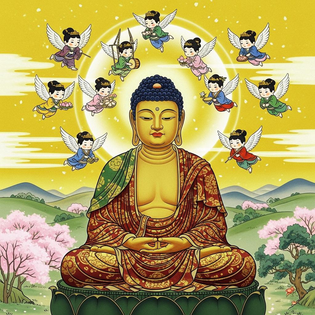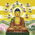 阿弥陀如来坐像と飛天