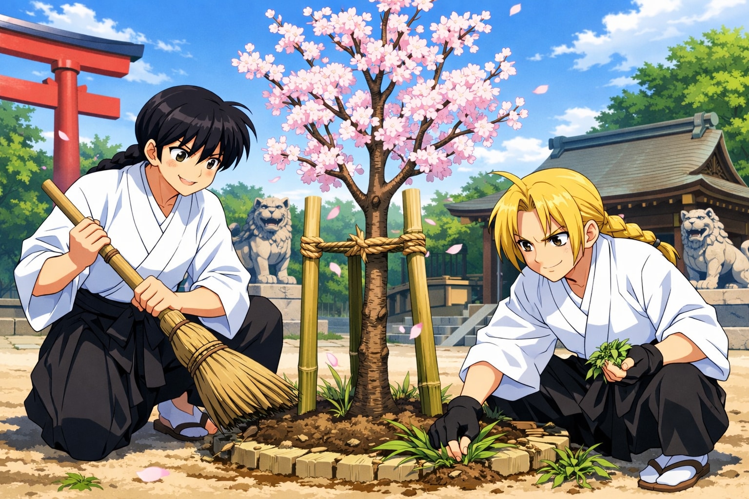 乱「今日はご神木の手入れと境内の掃除とかだな。おめーも着物と袴、似合ってるぞw」